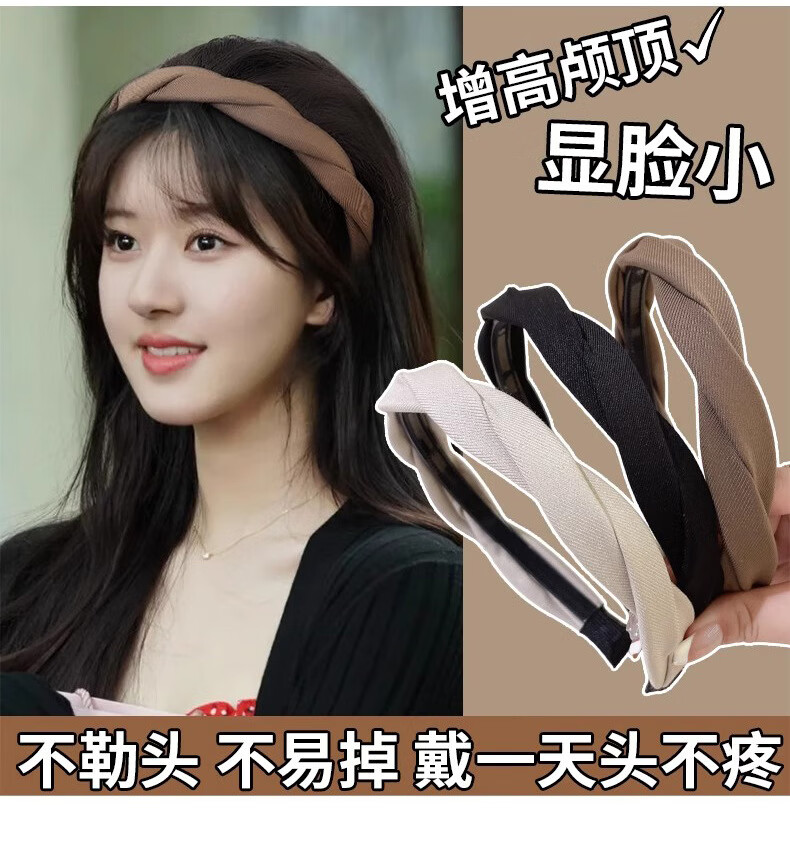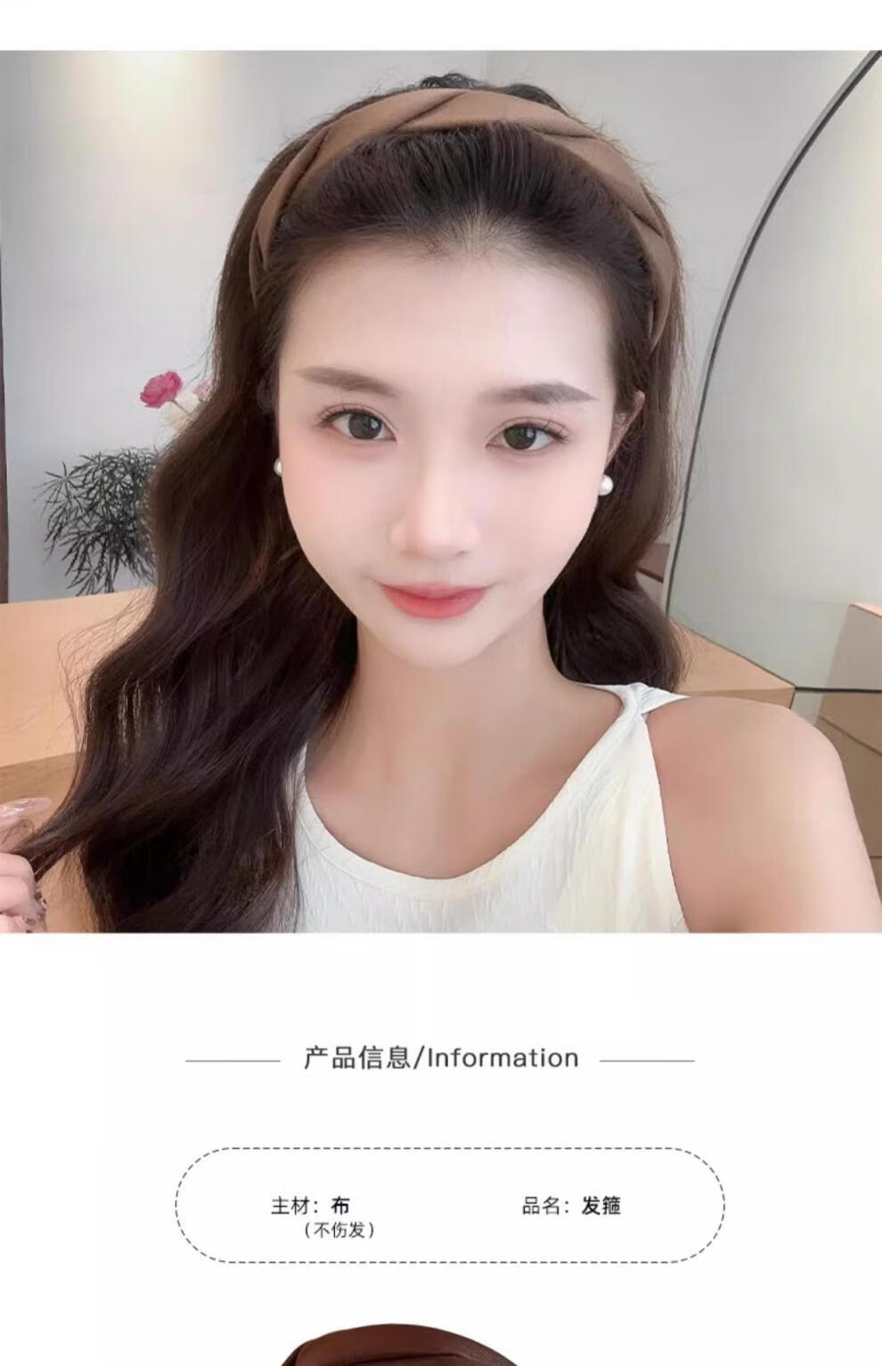 BARY REEF high skull headband women's new simple face wash non-slip headband wide edge with tooth pressure hairpin braided headwear coffee color