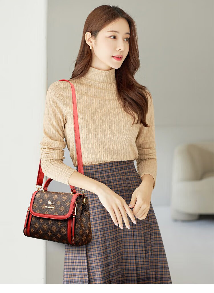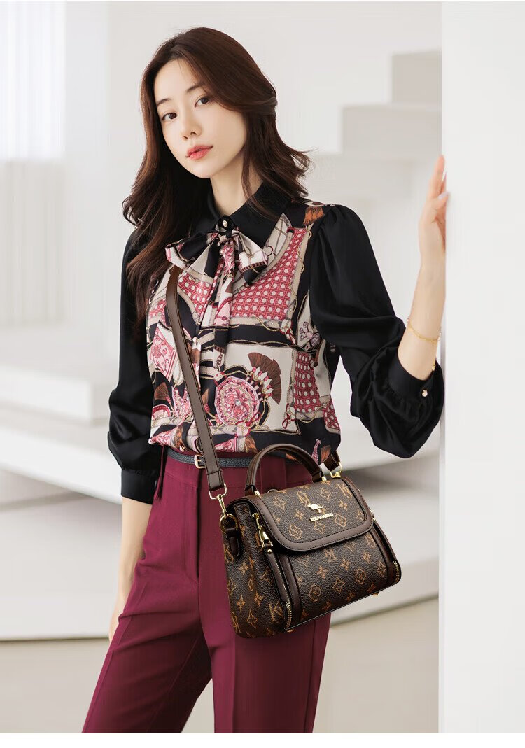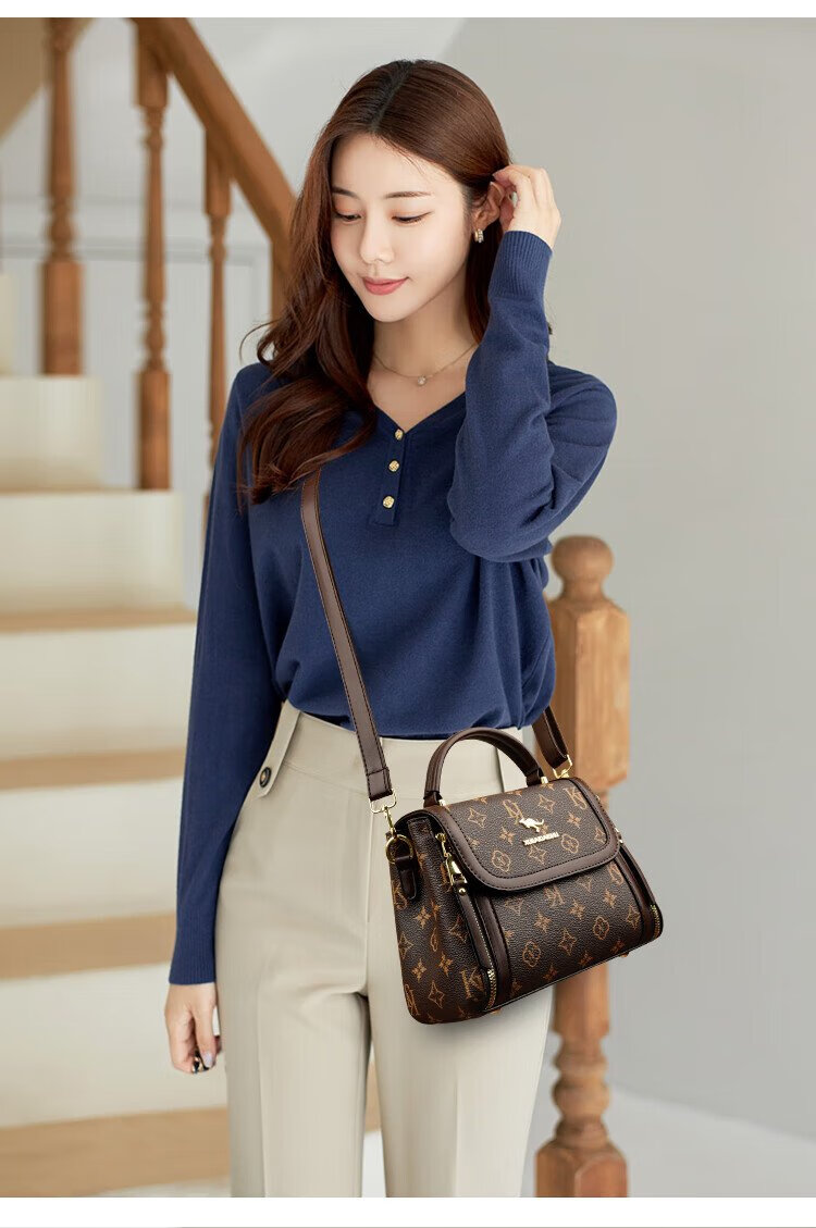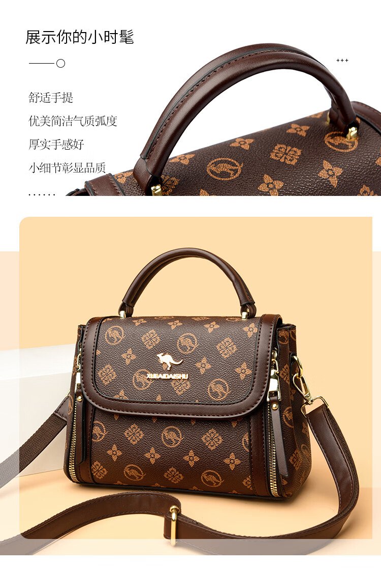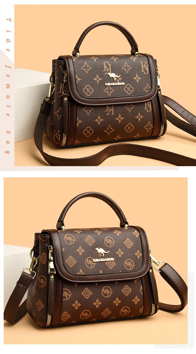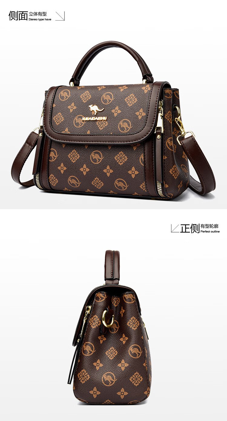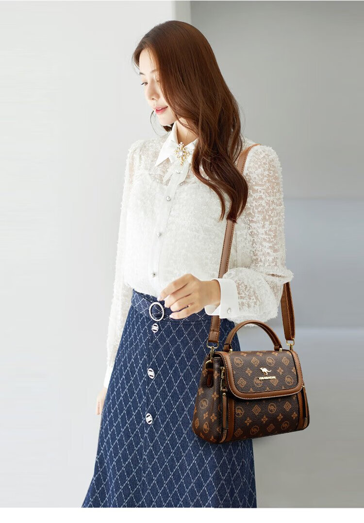 Snow Love Kangaroo Brand Genuine Leather Shoulder Bag Women's 50 for Mom 2025 New Crossbody Bag Gift for Women 30 and 40 Years Old Brown with Brown Gift Box + Gift Bag + Hand Bag Card Bag