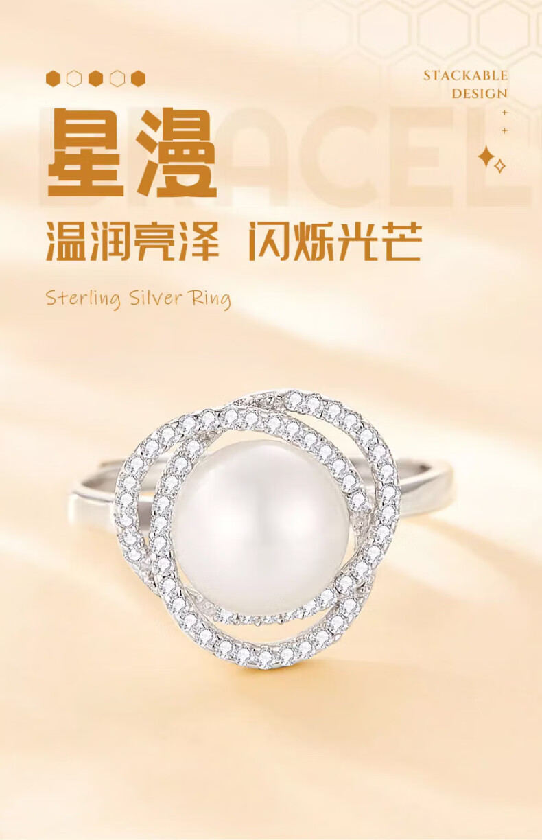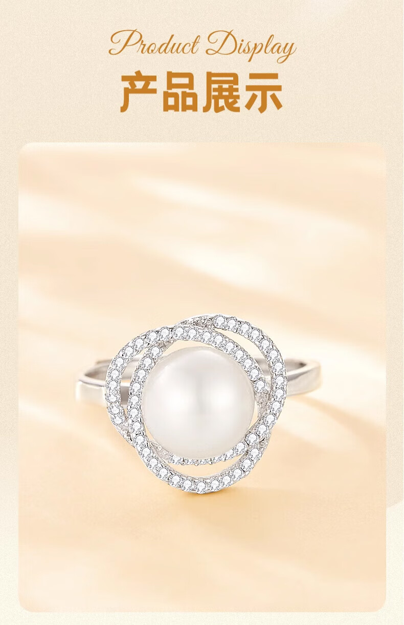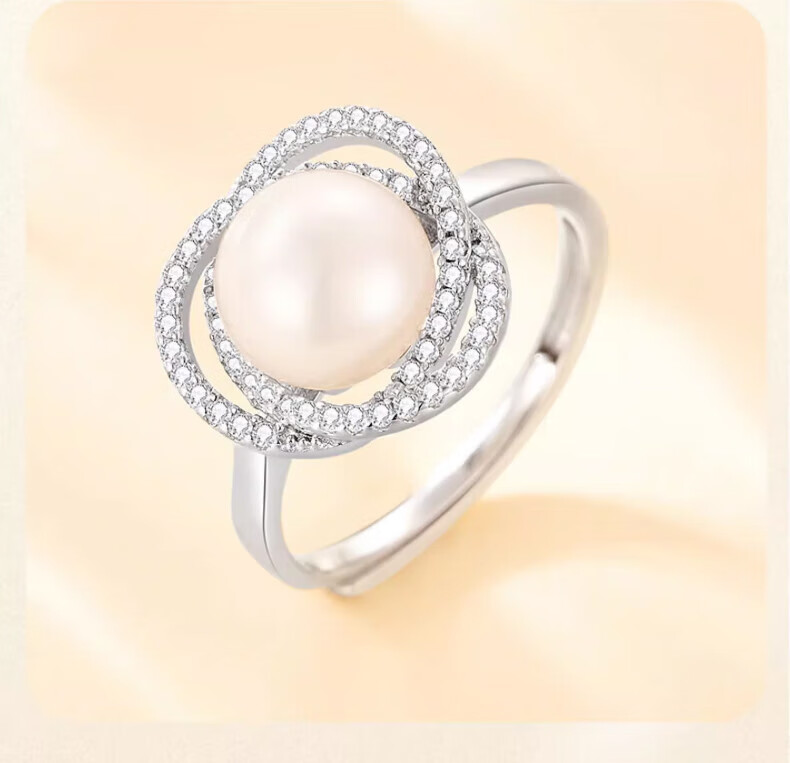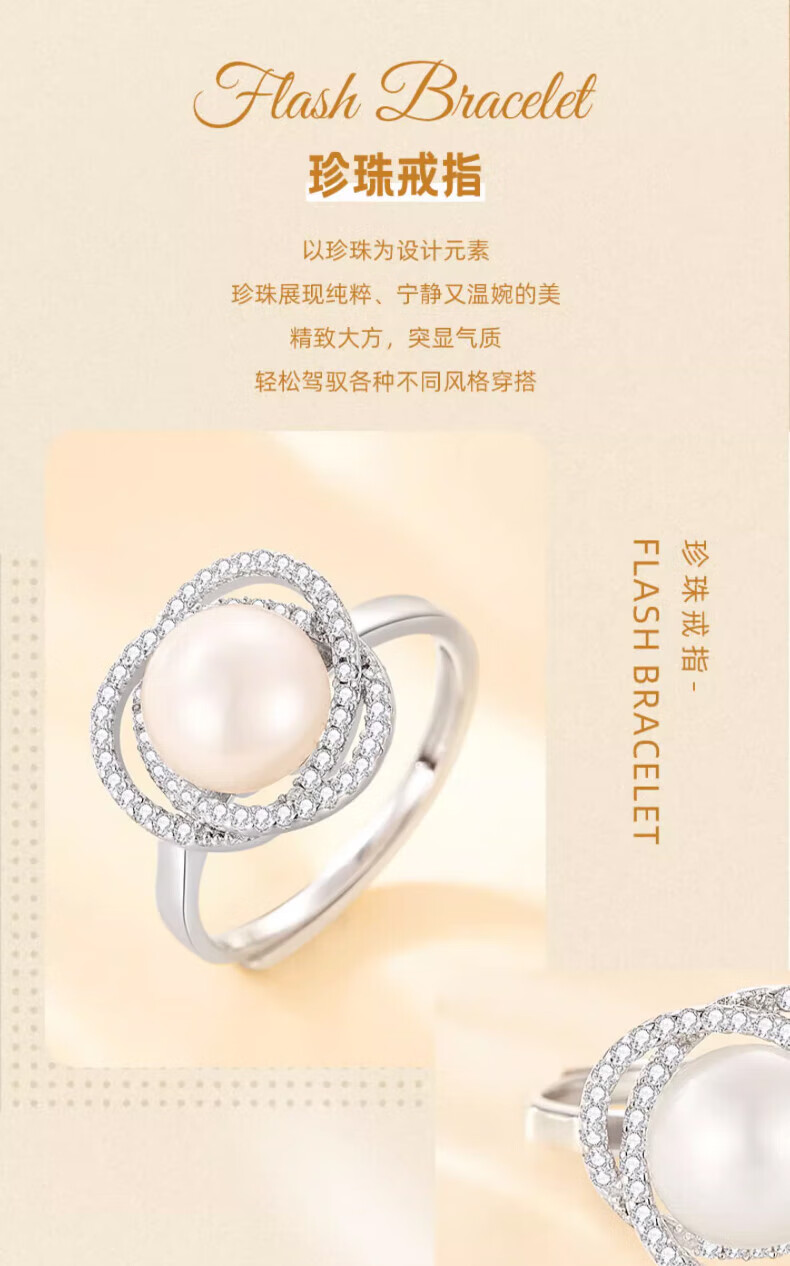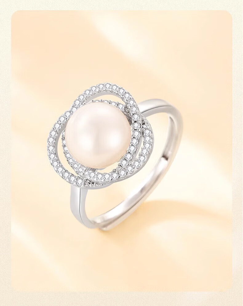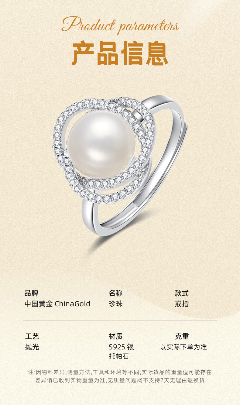 China Gold (CHINA GOLD) S925 Silver Pearl Ring Women's New Simple Plain Ring Index Finger Ring Wedding Send Girlfriend Birthday Gift Anniversary Pearl Ring