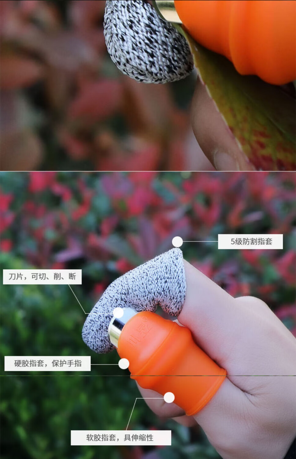 Dedong pepper-picking artifact gloves for picking vegetables, tea leaves, cherry vegetables, nail tips, picking finger scissors, fruit and vegetable thumb knife, women's model, 1 thumb knife + 5 finger cots