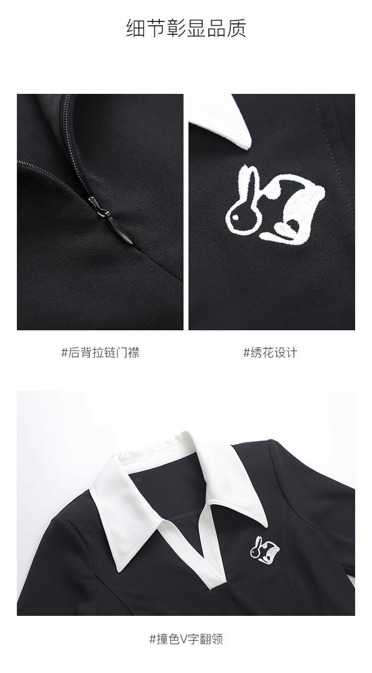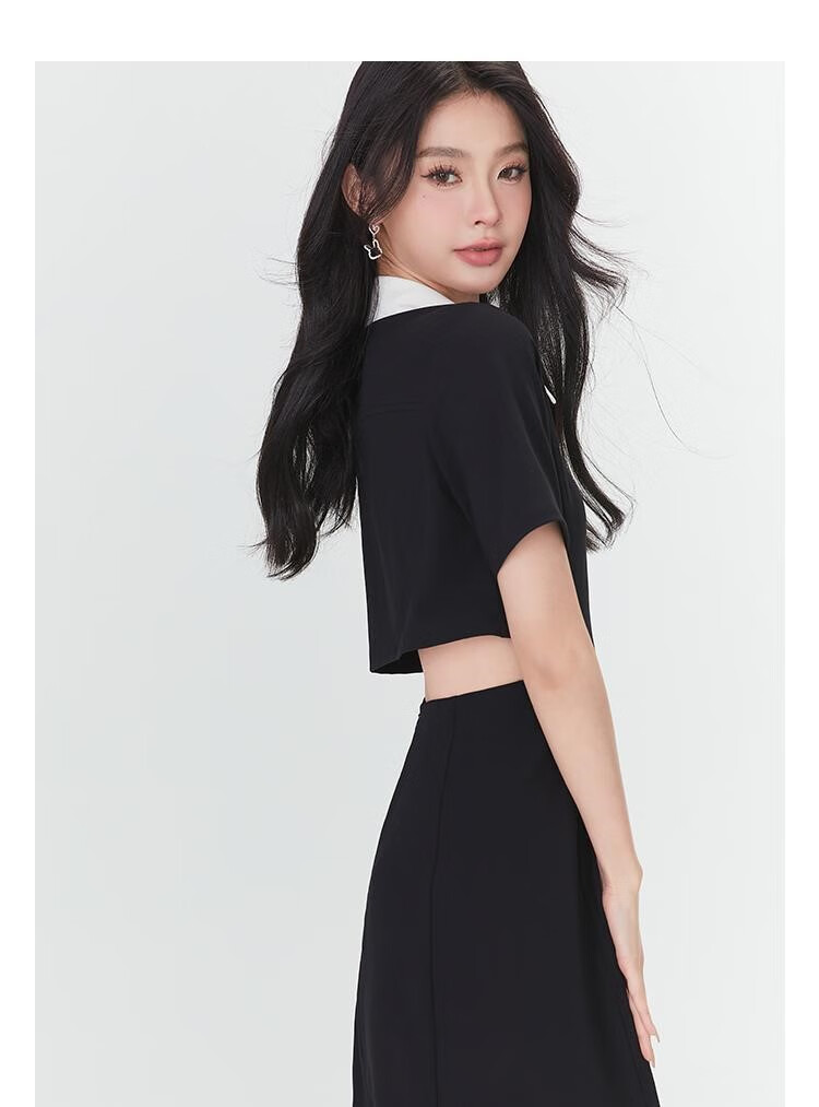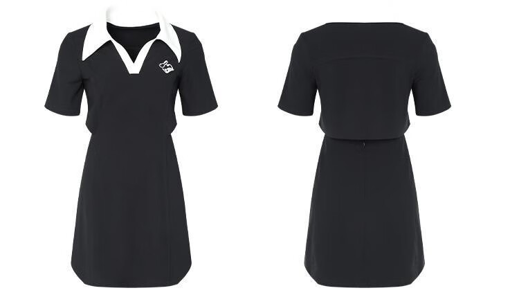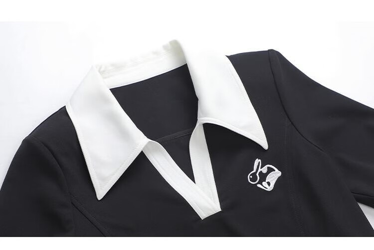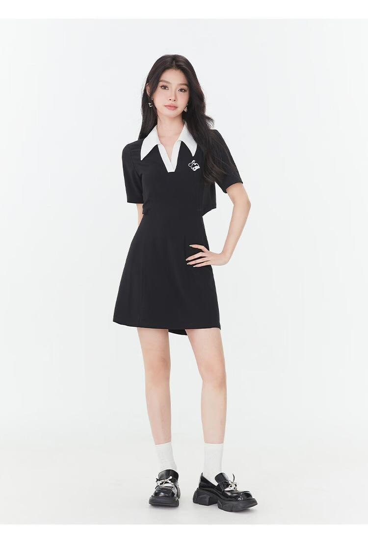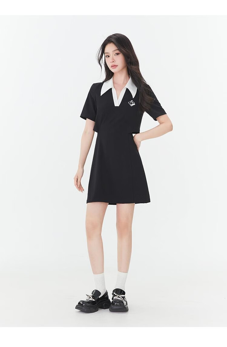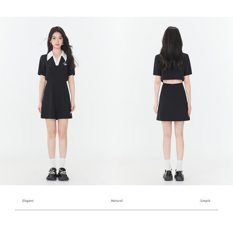 Fantu Fantu Casual Slim Contrast Color Polo Neck Hot Girl Dress Women 2023 Summer New Style Revealing Waist Hollow Design Black S