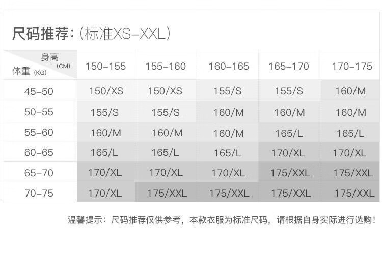 China (cm) 160-165/84-86 165-170 / 88-90 167-172 / 92-96 168-173 / 98-102 170-176 / 106-110