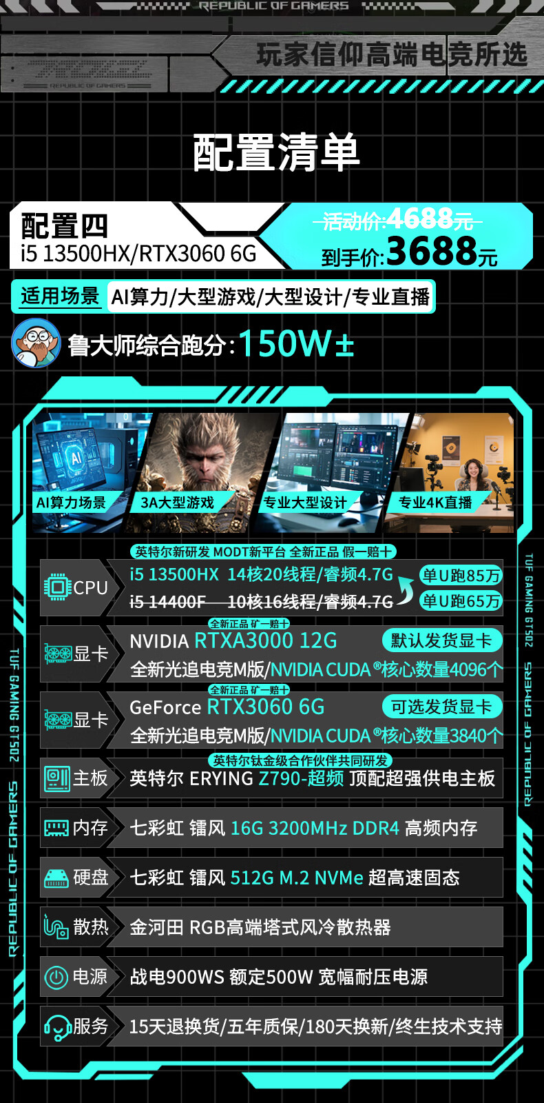 Colorful RTX5060/RTX5050 independent graphics + Intel 20-core overclocked 14th generation i7 14700/i7 12800HX desktop computer e-sports game live broadcast design and assembly host 10丨20-core 14th generation i7+RTX3080Ti 16G