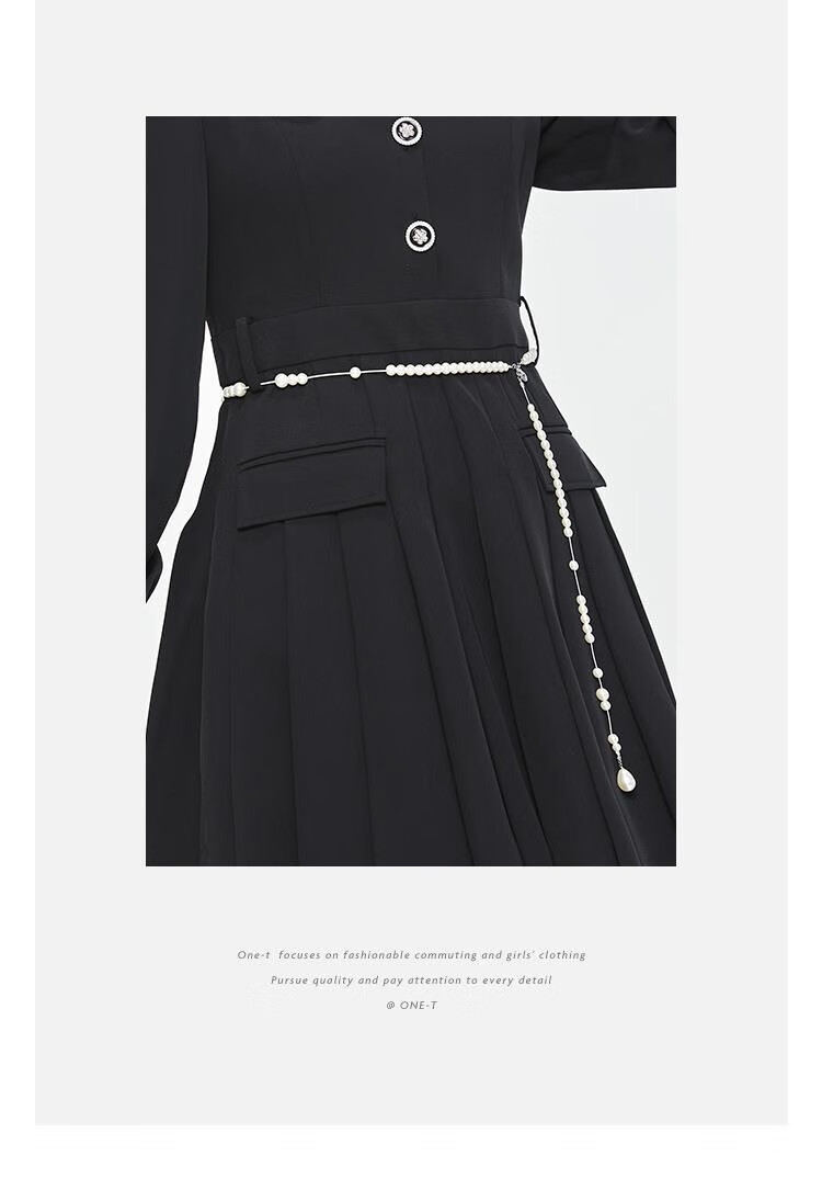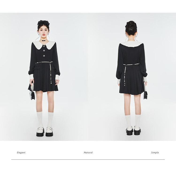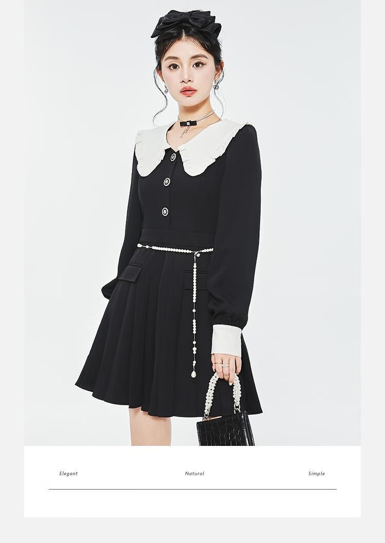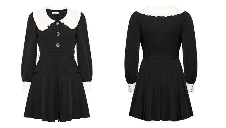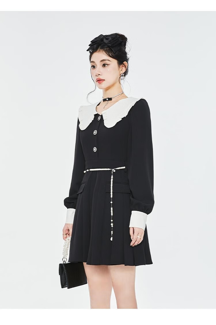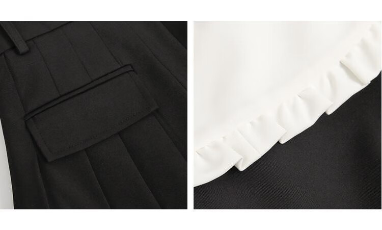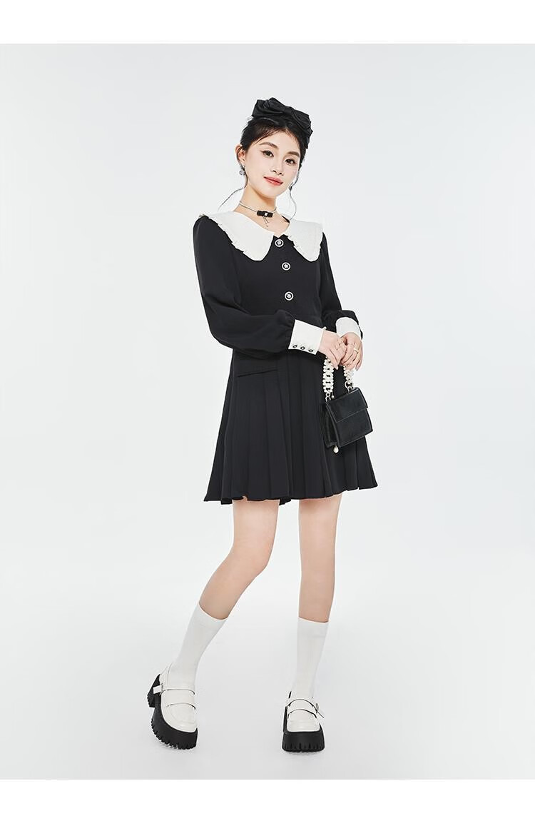Fantu College Style Suit Lace Collar Dress 2024 Autumn New Slim Design Black Pleated Skirt Women Black S