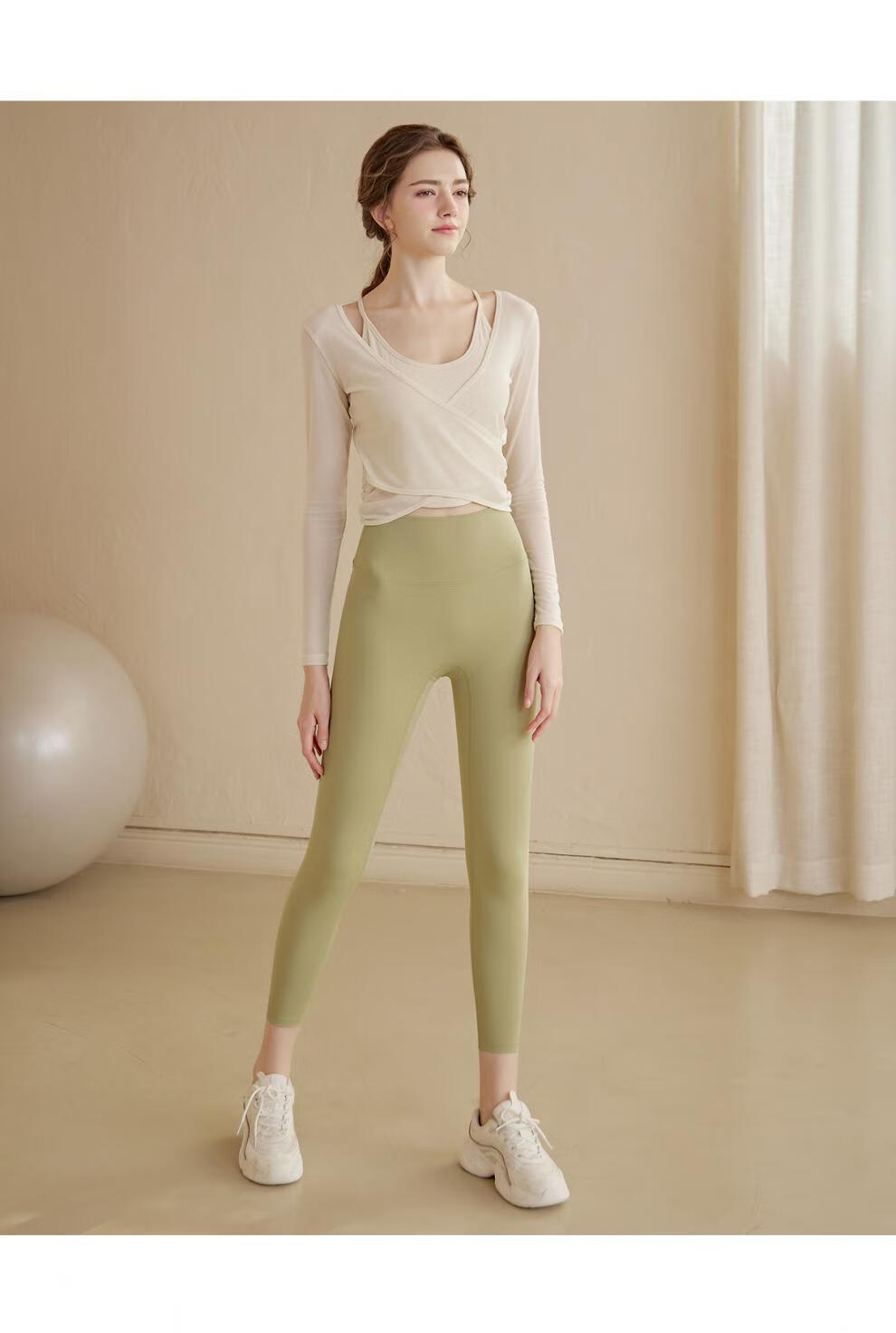 LULU CENTURY yoga clothes for women, sports tight long-sleeved running quick-drying breathable blouses for women, training Pilates fitness clothes tops for women, green blouse M