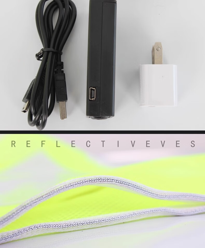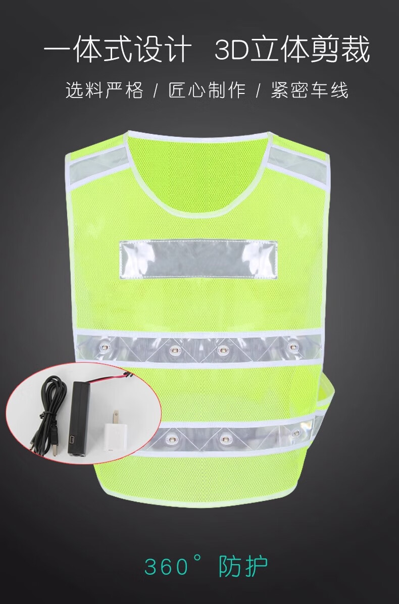 Rechargeable LED reflective clothing, flashing light, reflective vest, sanitation reflective vest, night safety cycling clothing, orange rechargeable version
