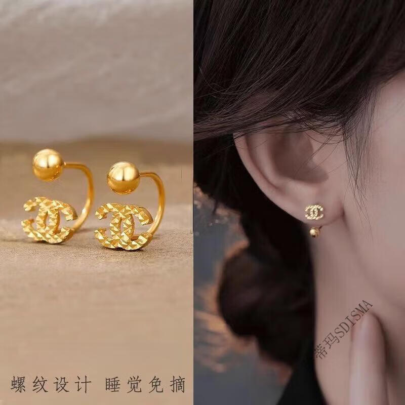 Satima 2025 new style hypoallergenic women's earrings, fashionable, versatile, high-end design, no need to take off thread for sleeping, small fragrance style, gold color-preserving electroplating (small fragrance style)