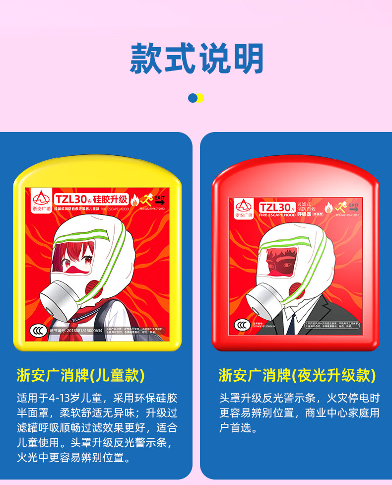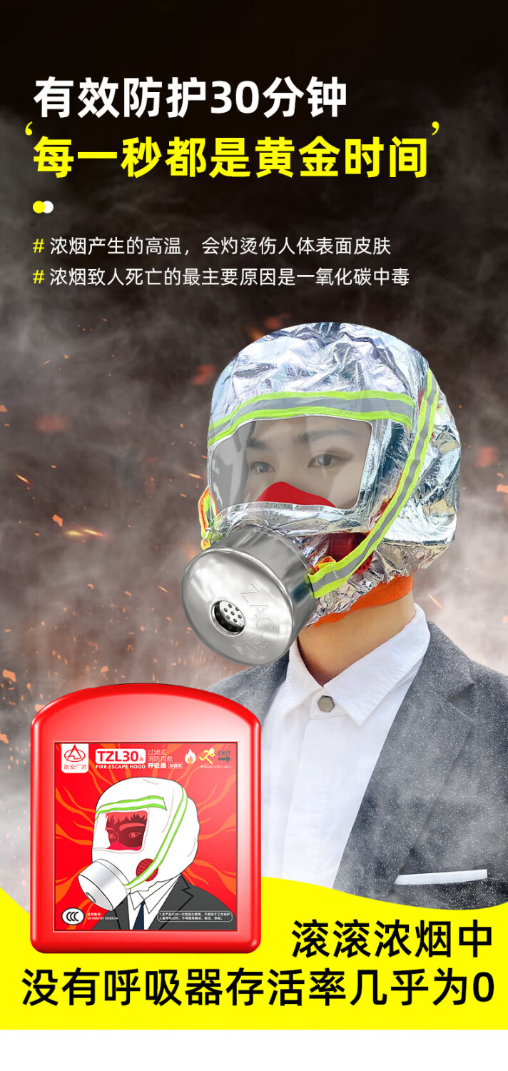 Zhe'an Guangxiao filter self-rescuing respirator TZL30A gas mask fire mask fire escape mask household national standard 3C Zhe'an Dongguan upgraded model