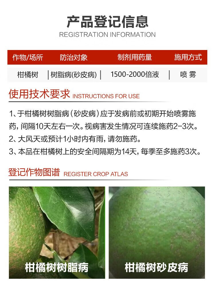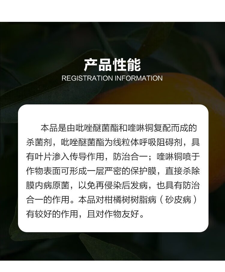 Zhongxunkuliang 40% pyraclostrobin quinoline copper citrus sand skin disease sand skin disease resin disease pesticide fungicide 100g