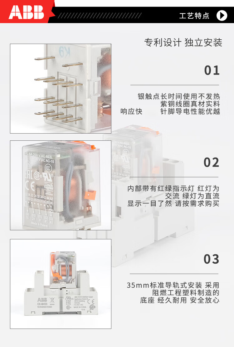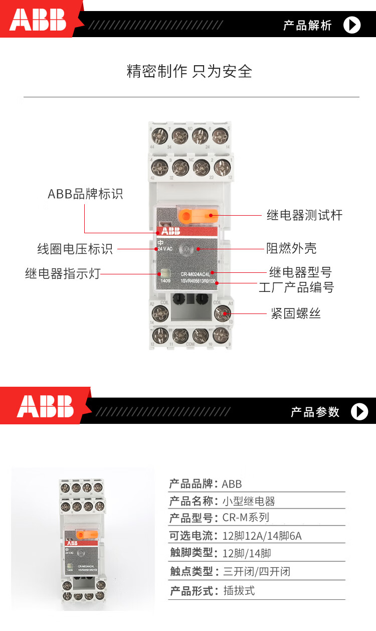 ABB small intermediate relay CR-M024DC2L AC 14/8 pin 24V DC electromagnetic base CR-M2SS CR-M110DC4L
