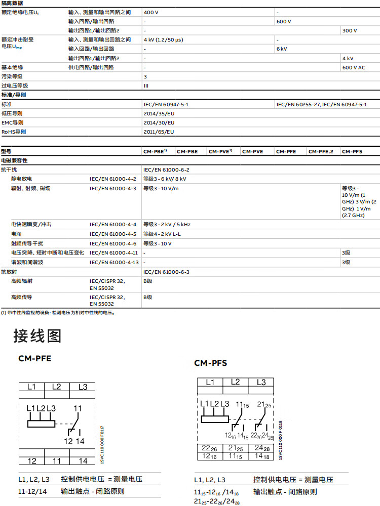 ABB phase sequence relay CM-PFE phase loss protection CM-PFS.S/PSS.31S three-phase monitoring MPS.41S CM-PFE