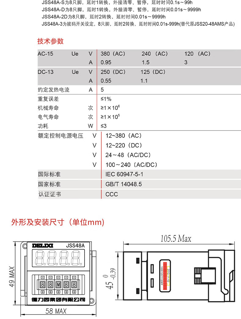 Delixi DH48S-S time relay digital display cycle control 0.1S-99H AC220v JSS48A-S 0.1S-99H AC220V