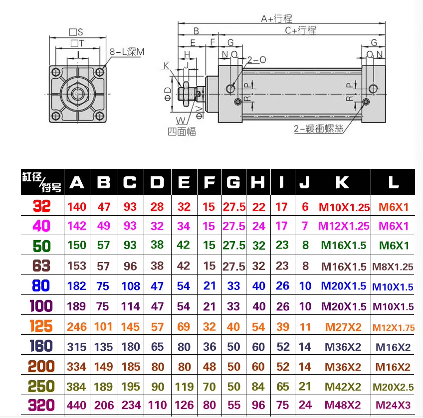 Airtac standard large cylinder SC125/160/200/250X25X50X75X100X125X150X17 SC125 bore without magnet