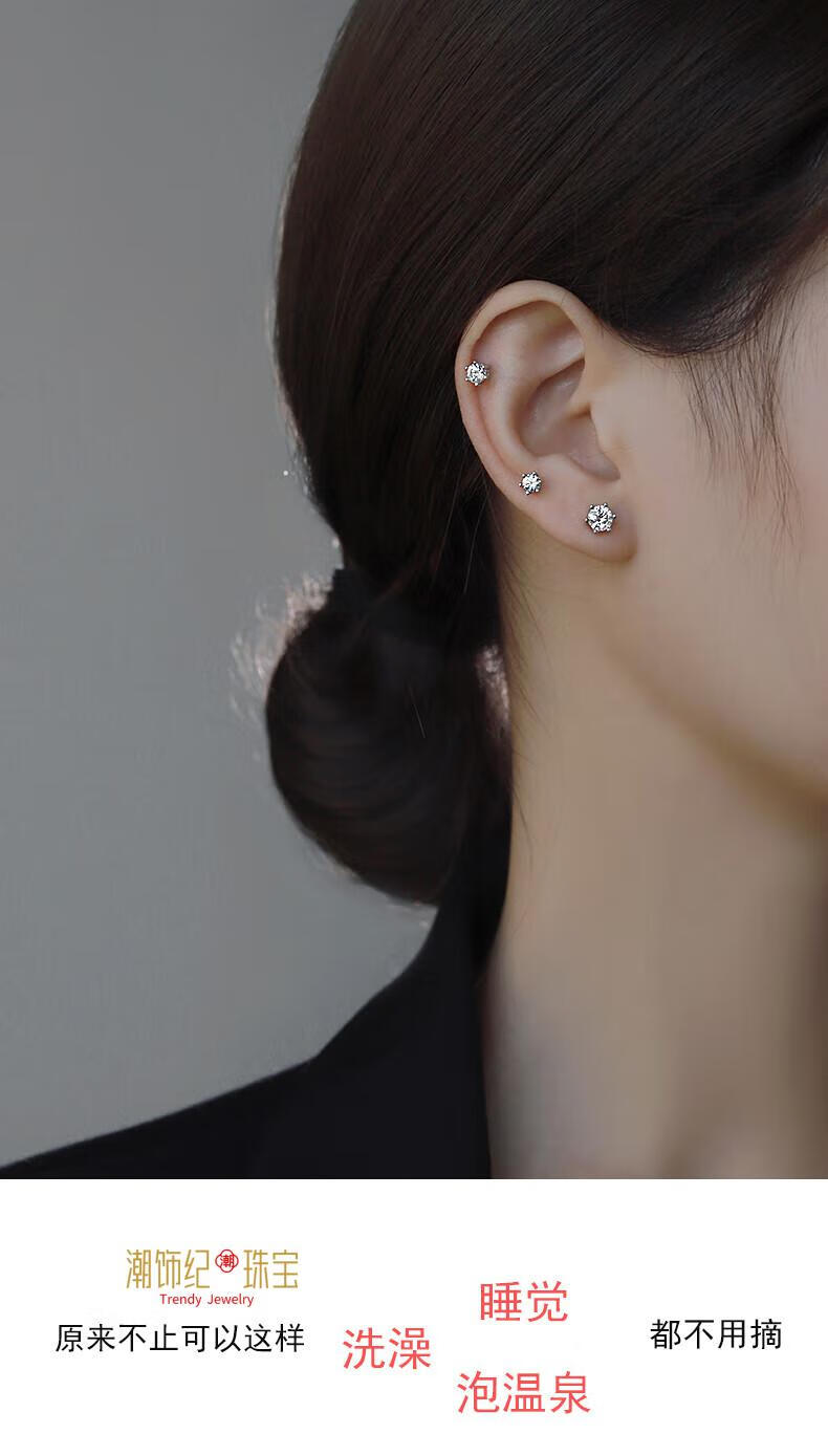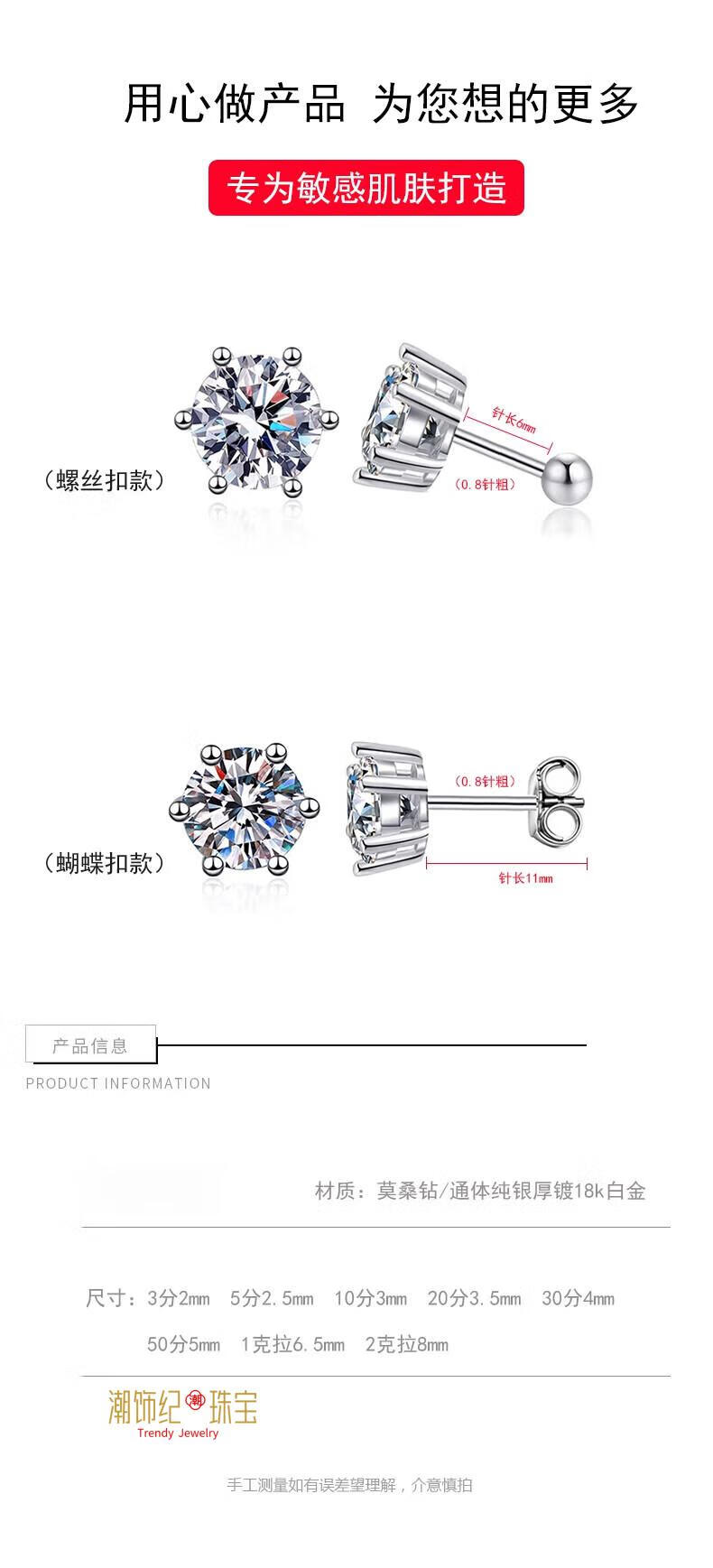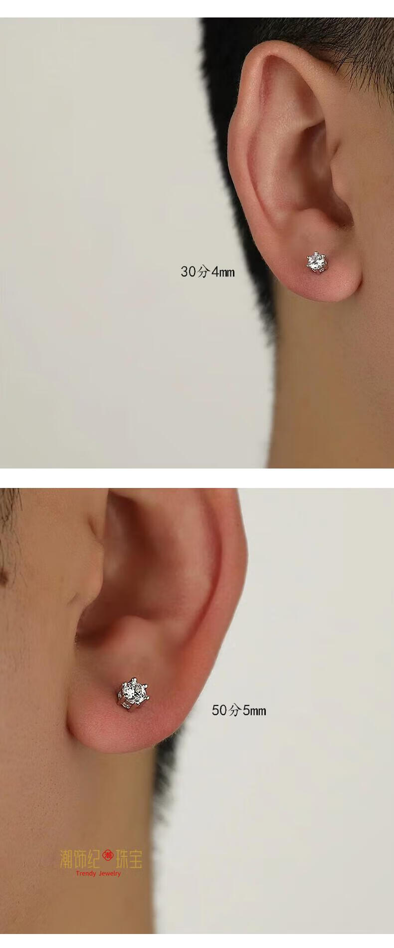 DL 1998 Fat Donglai same style 18k gold moissanite earrings for men and women 18 earrings silver single diamond ear bone nail screws light luxury (six claws single 30 points) turnbuckle earplugs