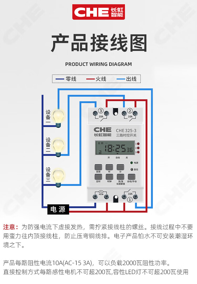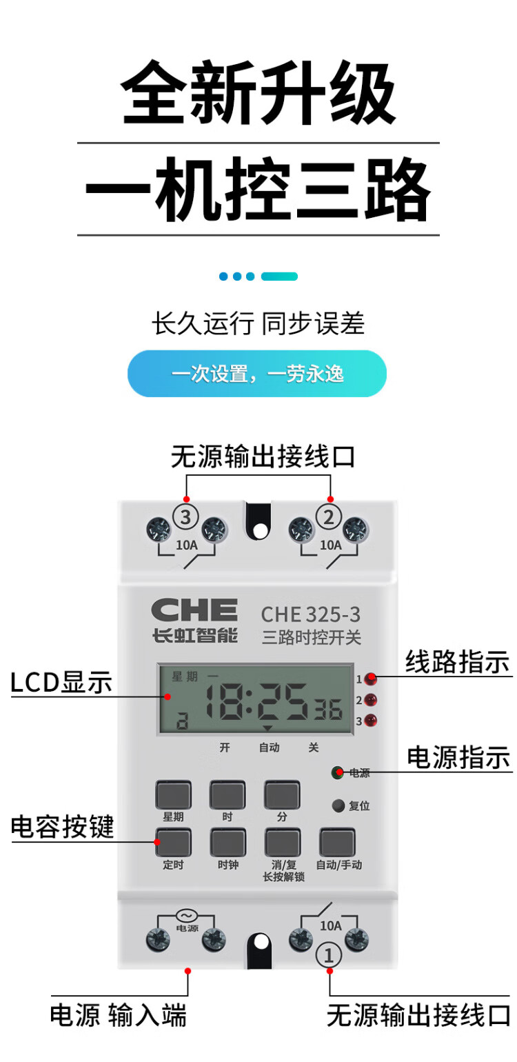 Passive multi-channel output time control switch CHE325 space-time time three-way timing controller two intelligent timing peak 3-way time control switch 220V