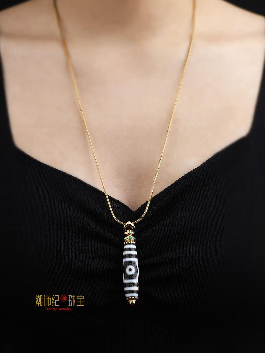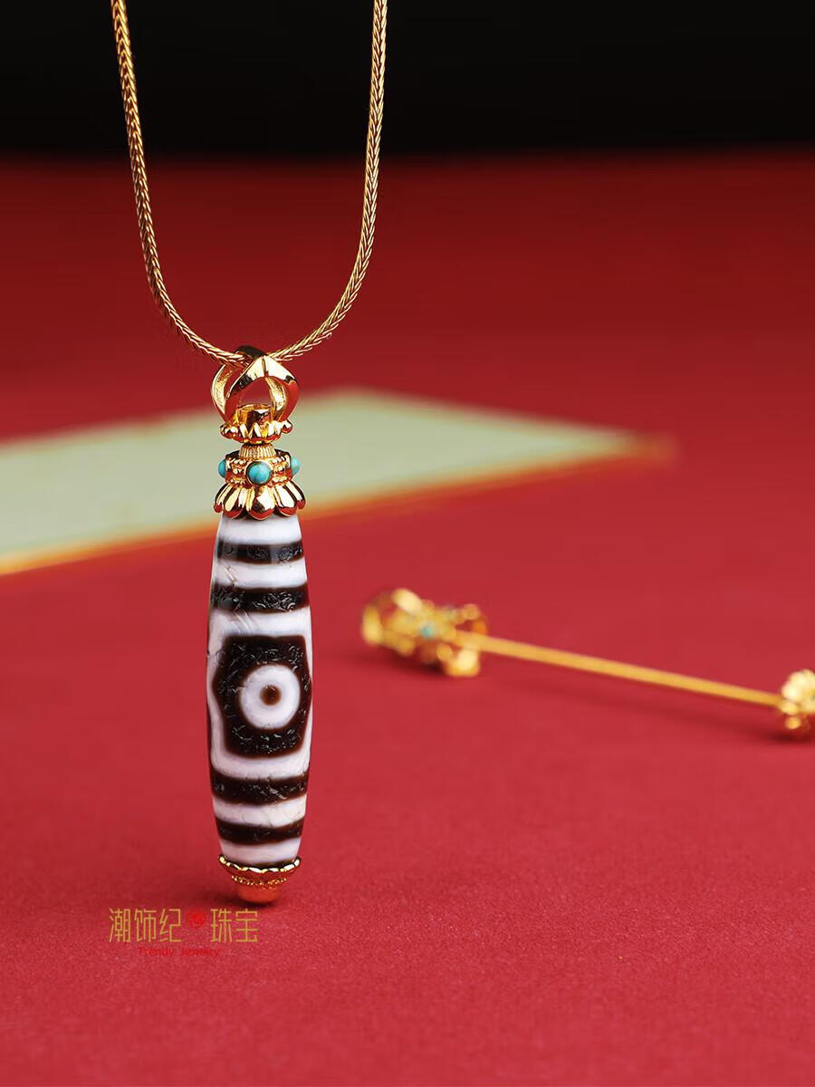DL 1998 Fat Donglai same style universal buckle 18k gold Dzi beads vertical wear special buckle Dzi beads pendant empty support accessories gold