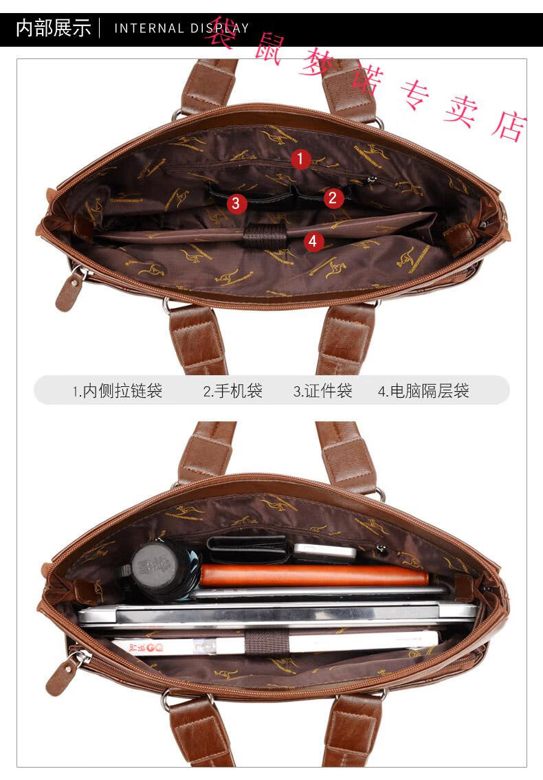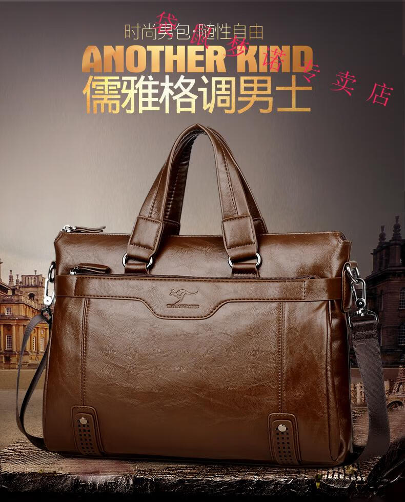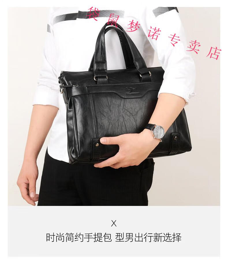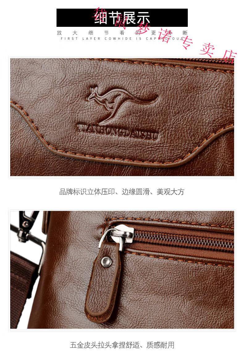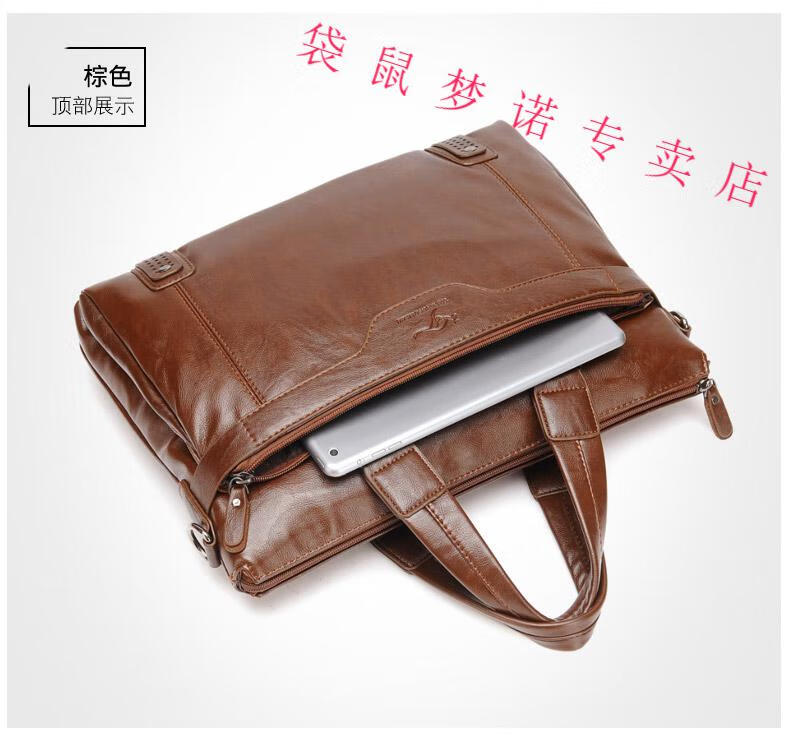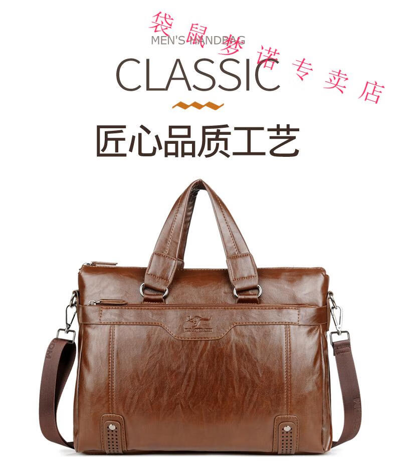 Kangaroo brand luxury briefcase men's genuine leather men's handbag bag business cowhide men's bag shoulder crossbody leather bag large black default size 23 small size 14 inches large size 16 inches