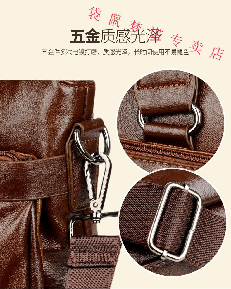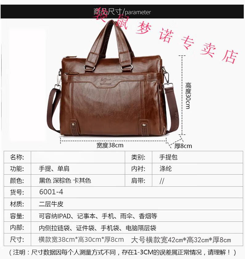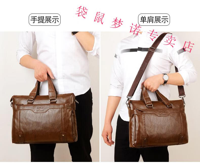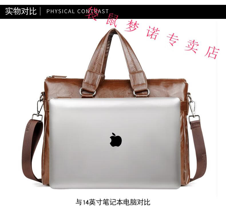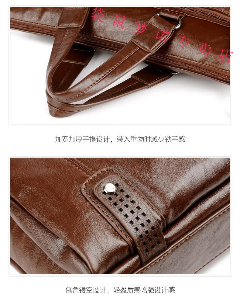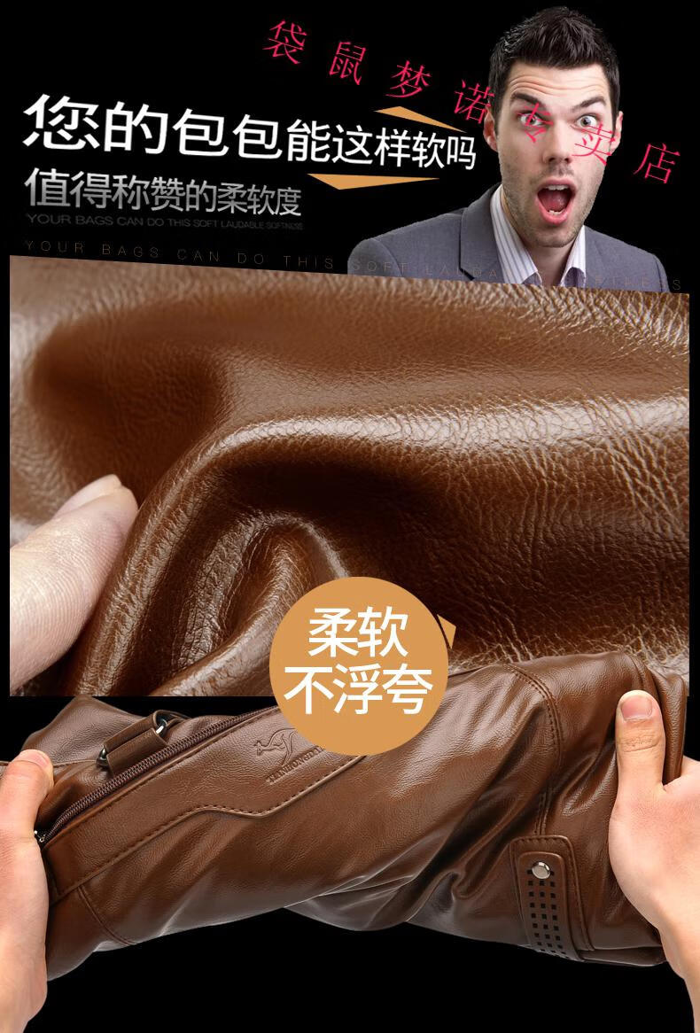 Kangaroo brand luxury briefcase men's genuine leather men's handbag bag business cowhide men's bag shoulder crossbody leather bag large black default size 23 small size 14 inches large size 16 inches