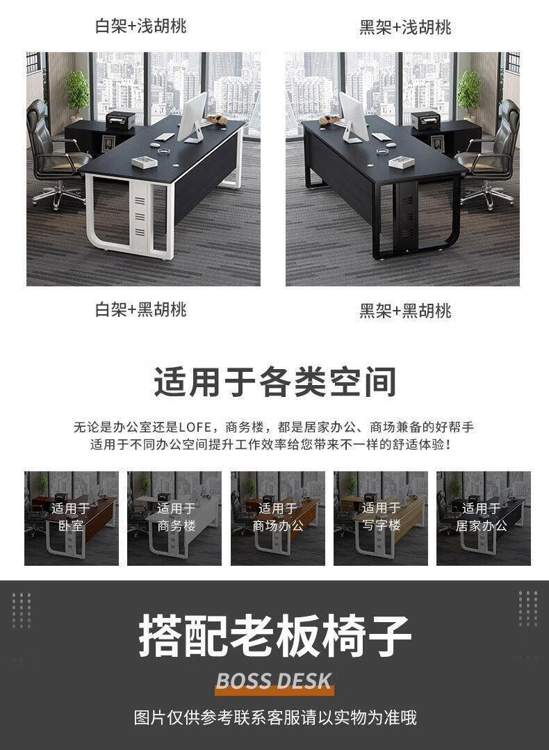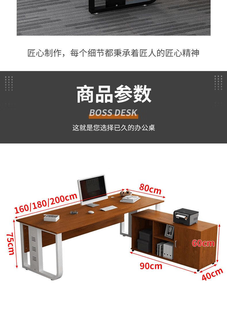 Elorin boss desk and chair combination manager desk simple modern office desk executive desk single supervisor president office furniture black desktop + elegant black shelf 160*80 table thickened + side cabinet with lock