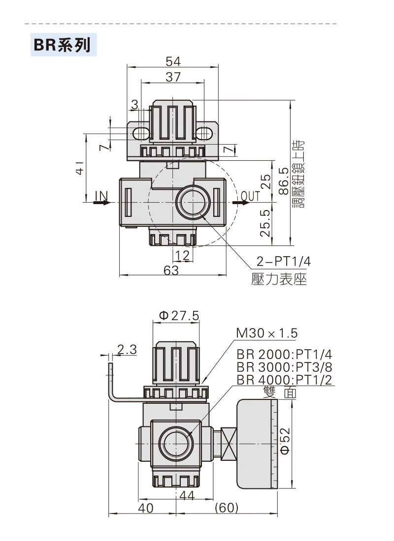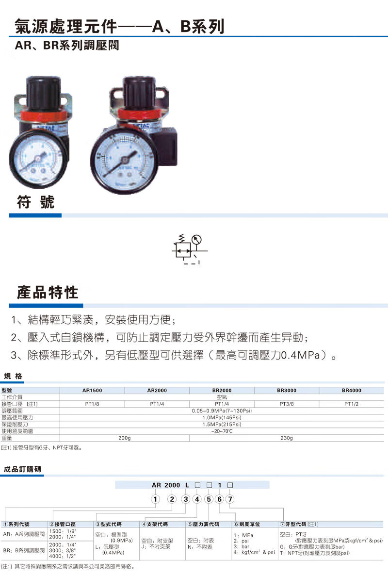 BR4000 pressure reducing valve and pressure regulating valve AR2000 with strap holder