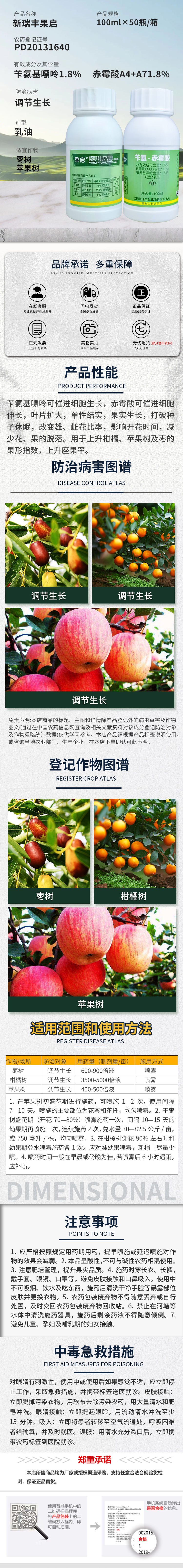 Xinruifeng Guoqi 3.6% benzylamine gibberellus jujube citrus apple tree plant growth regulator 100ml