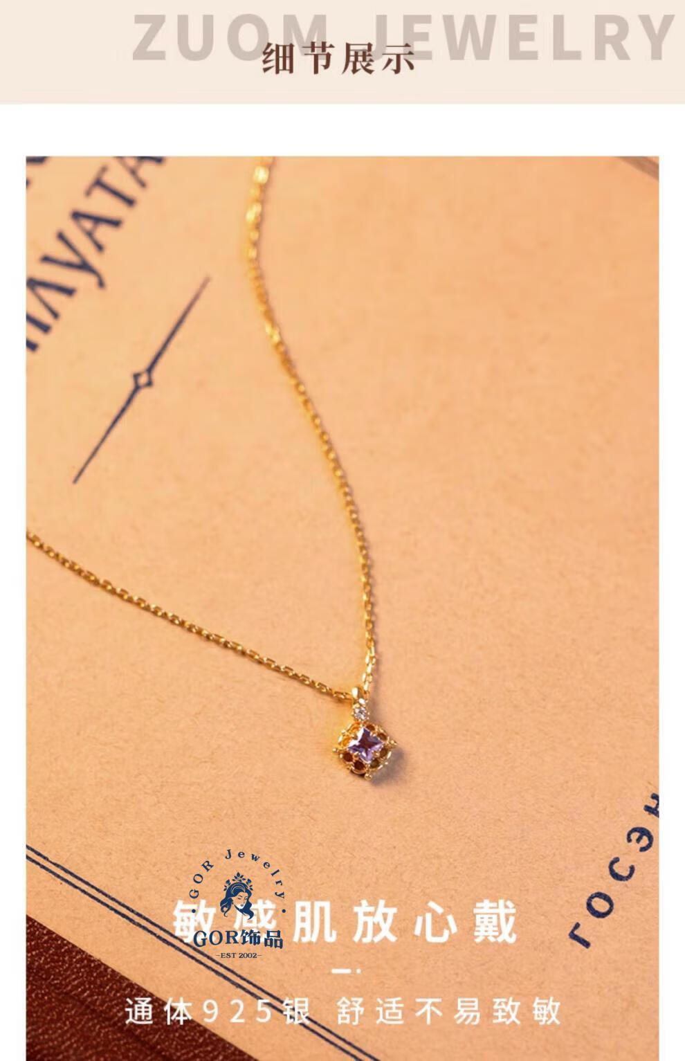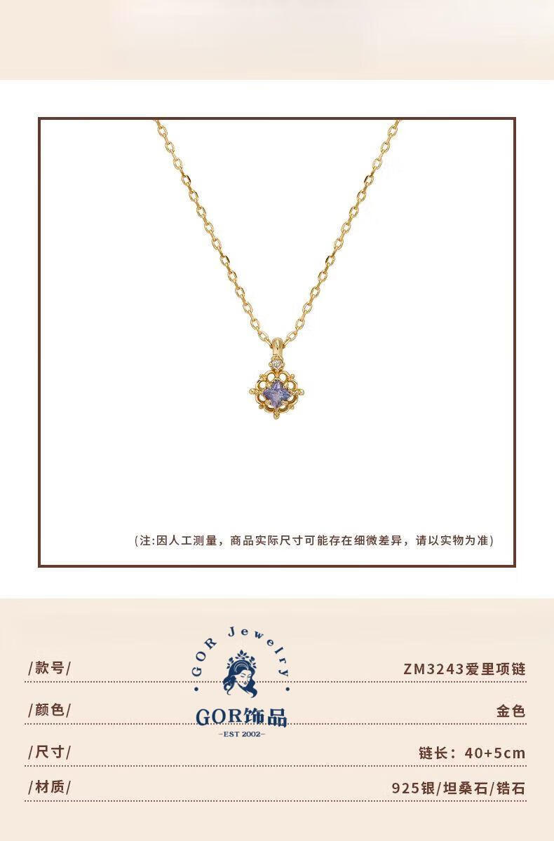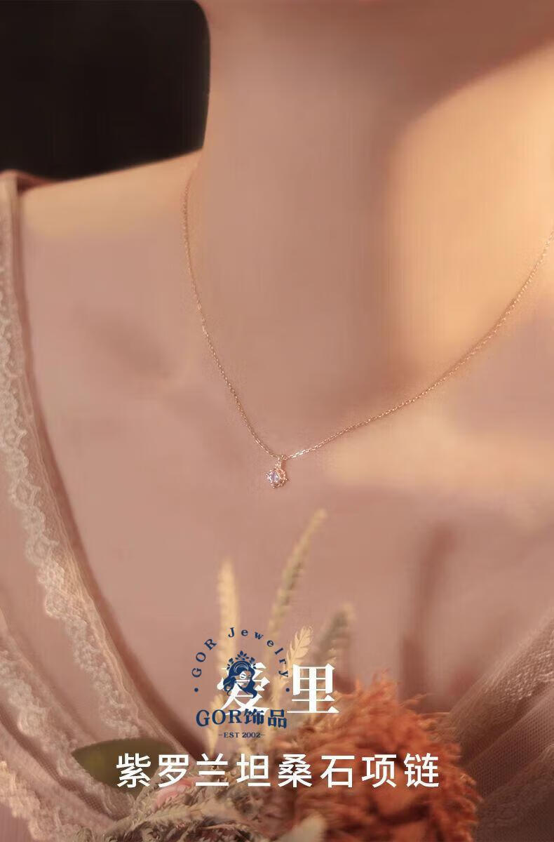 GOR Fat Donglai Quality Tanzanite Necklace Zomei Retro Natural Women's Silver Light Luxury Niche Hollow Exquisite Clavicle Purple Gold 40+5cm