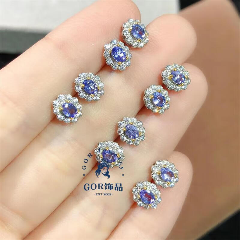 GOR Fat Donglai's same tanzanite earrings new product natural s925 silver inlaid blue-purple gemstone earrings temperament style random pair of earrings