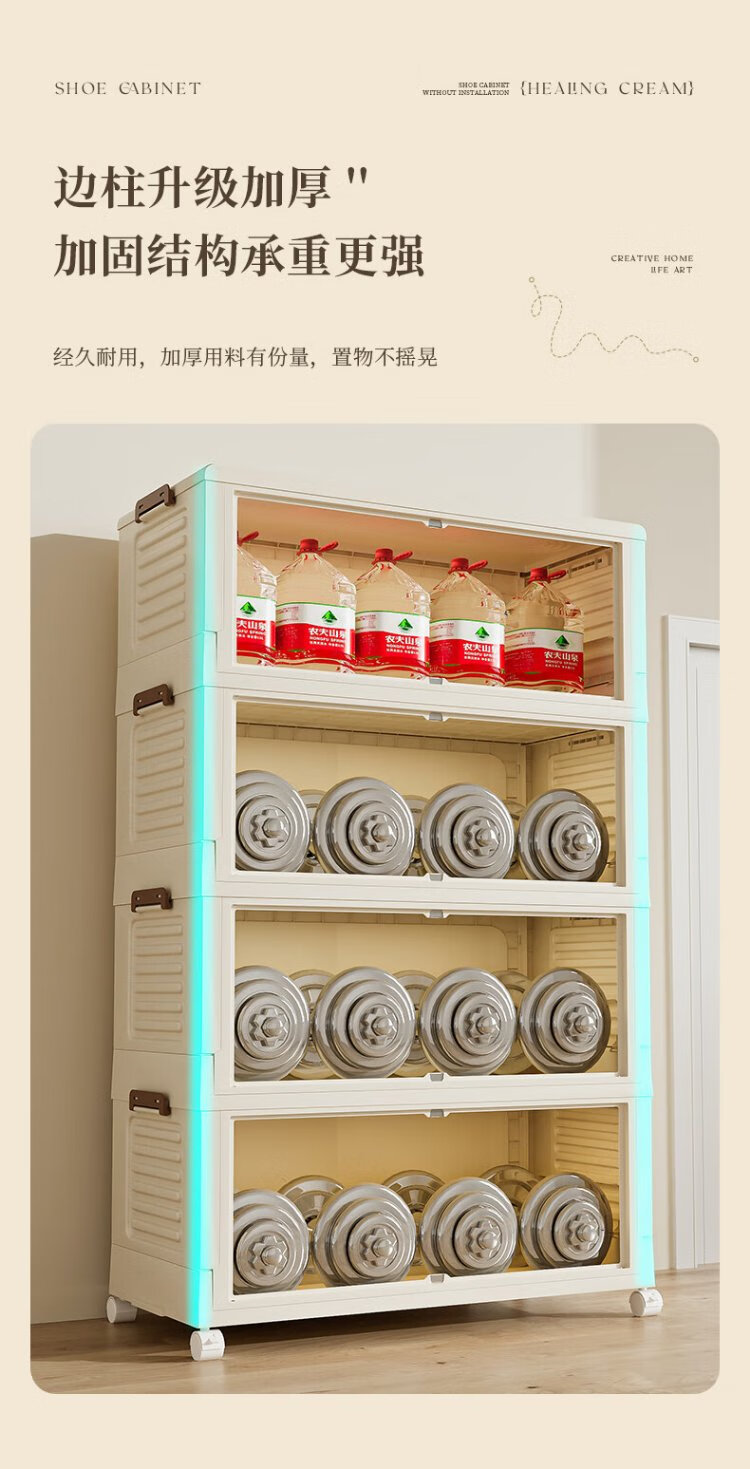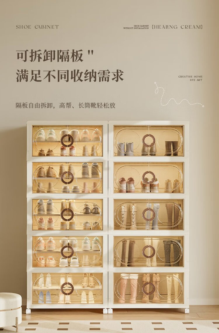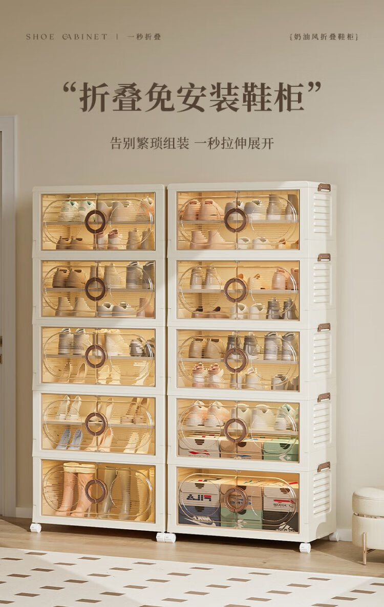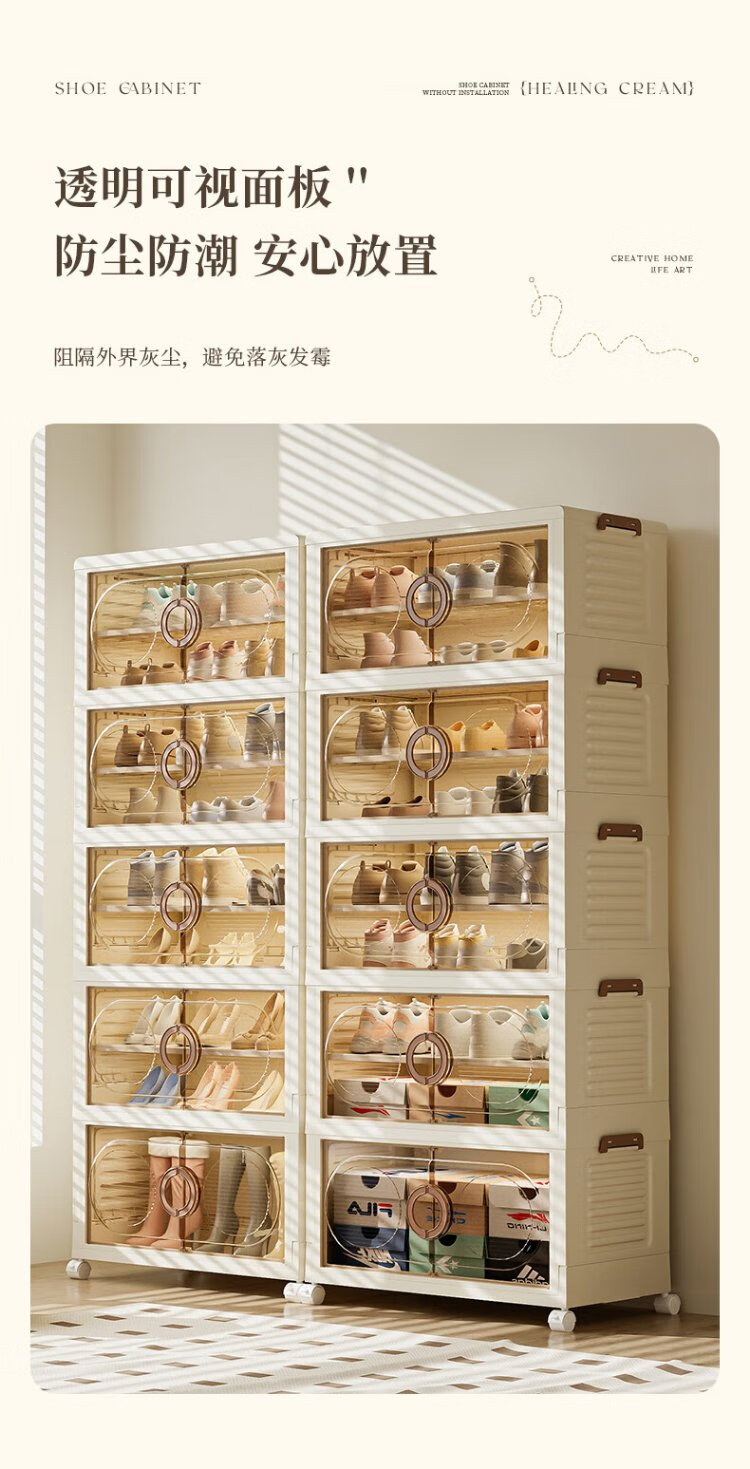 Quanshi installation-free foldable shoe cabinet shoe storage box transparent AJ shoe box home entrance porch shoe rack storage rack 50 sides wide 3 layers 6 compartments removable partitions
