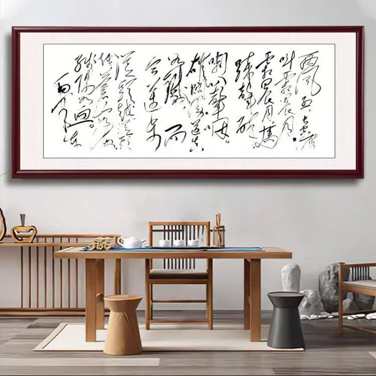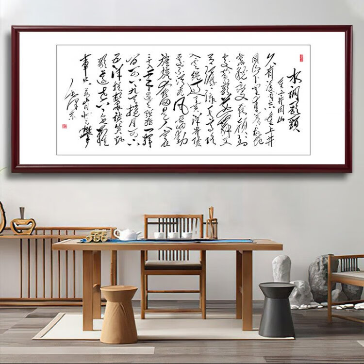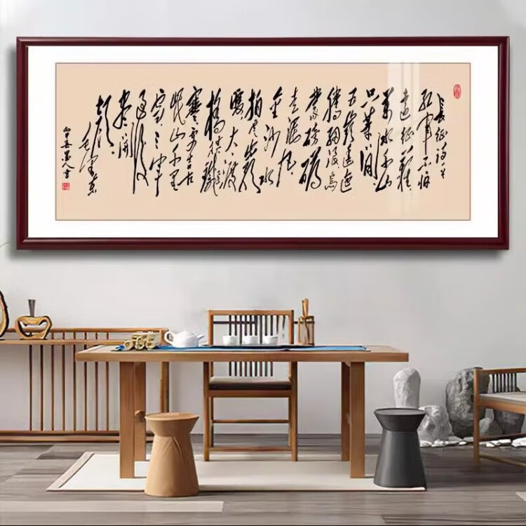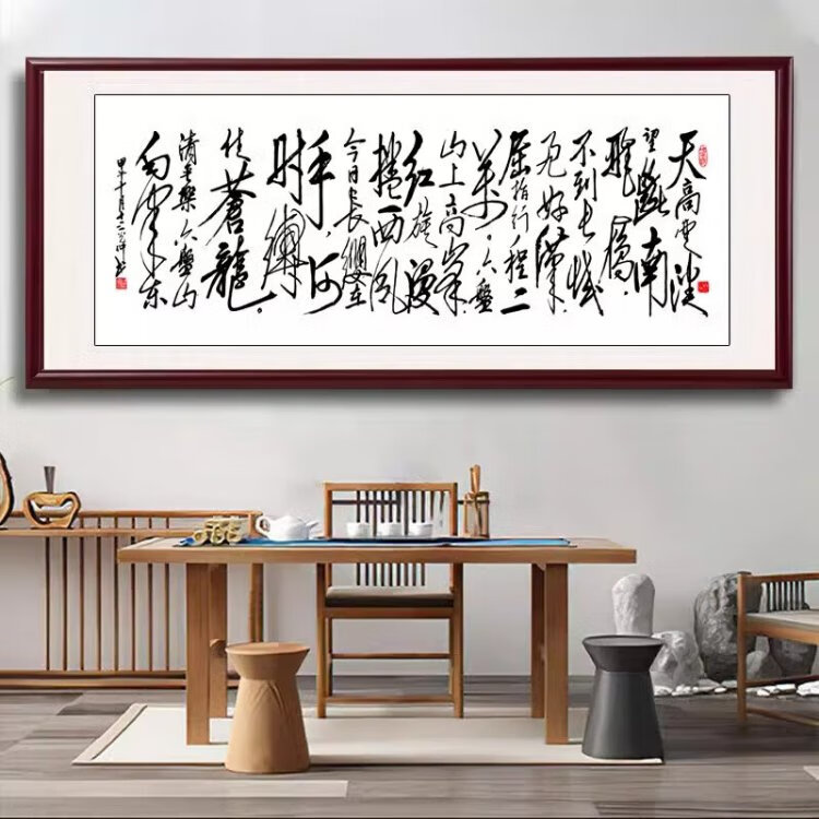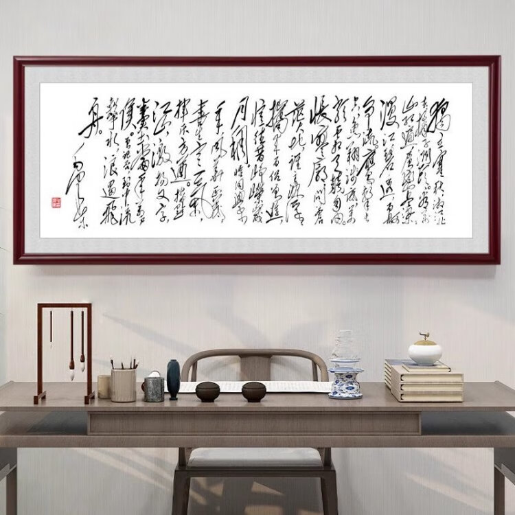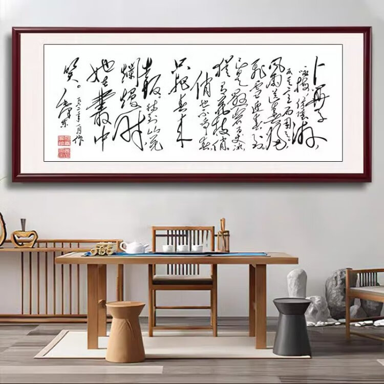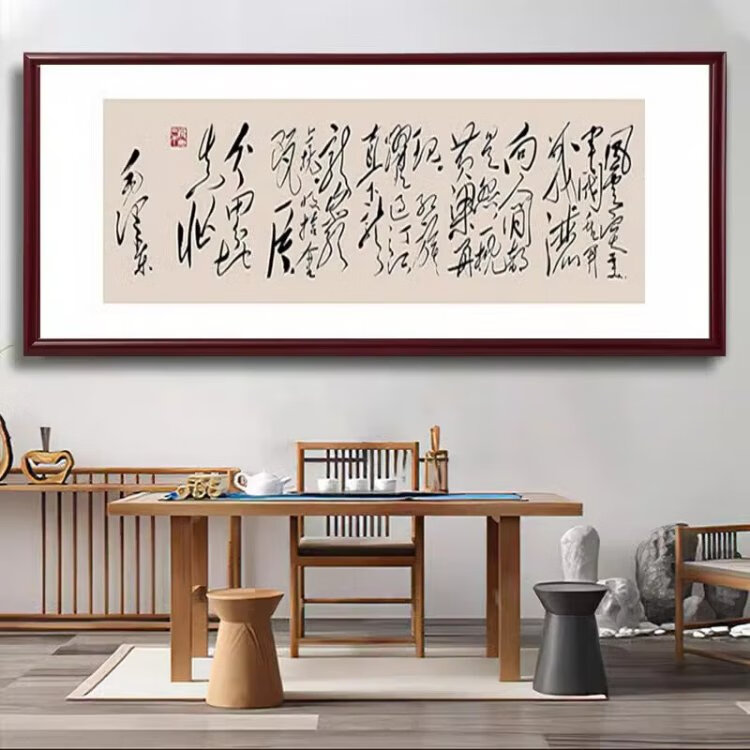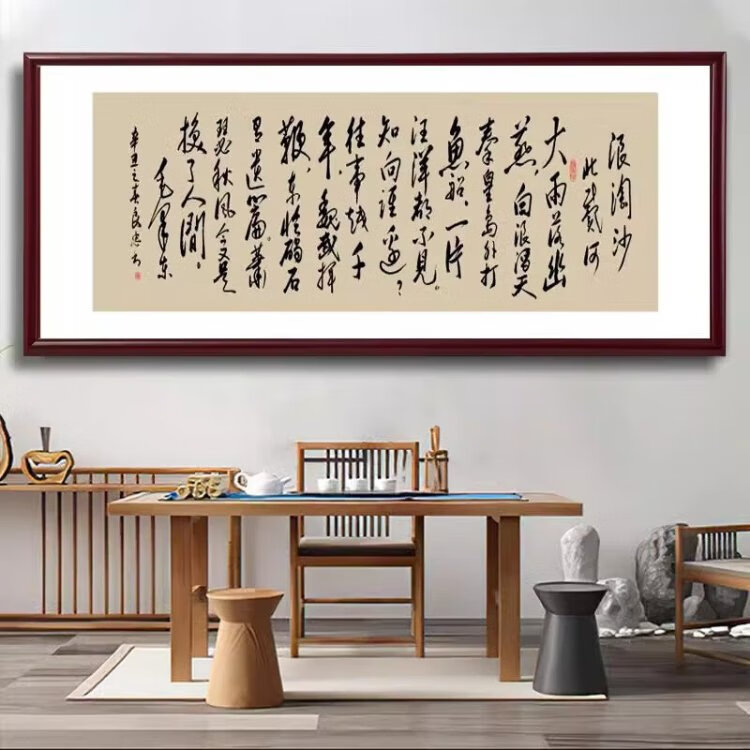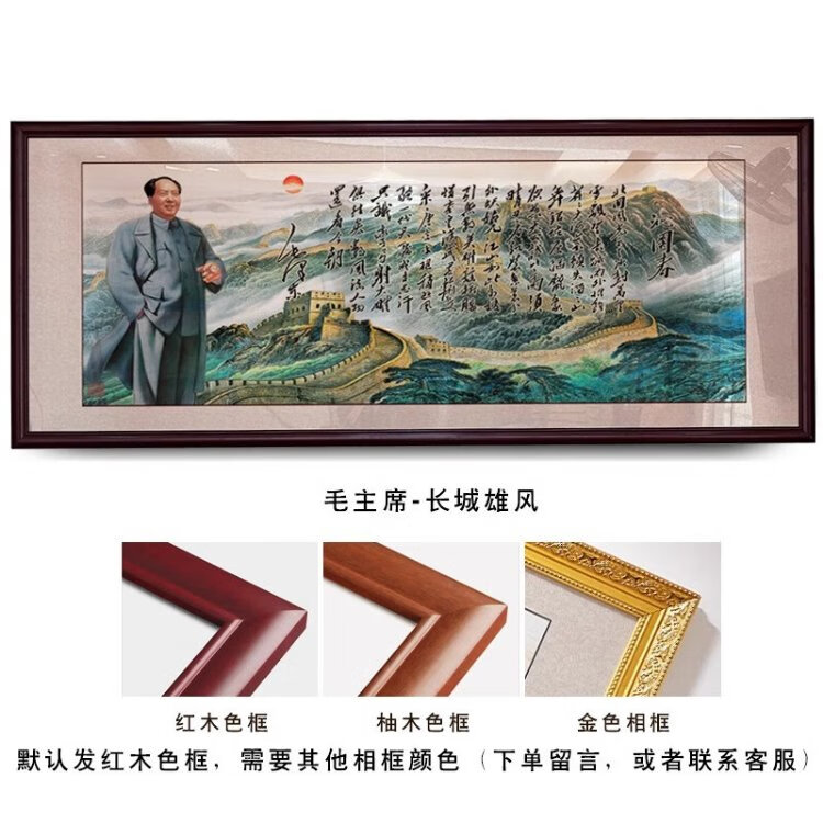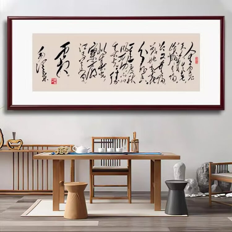 Hua Shi Qun Fu Mao Zedong's poems, calligraphy and calligraphy famous handwriting reproduction office tea room hotel wall decoration hanging painting Qinyuan Chunxue 128 48cm framed finished size