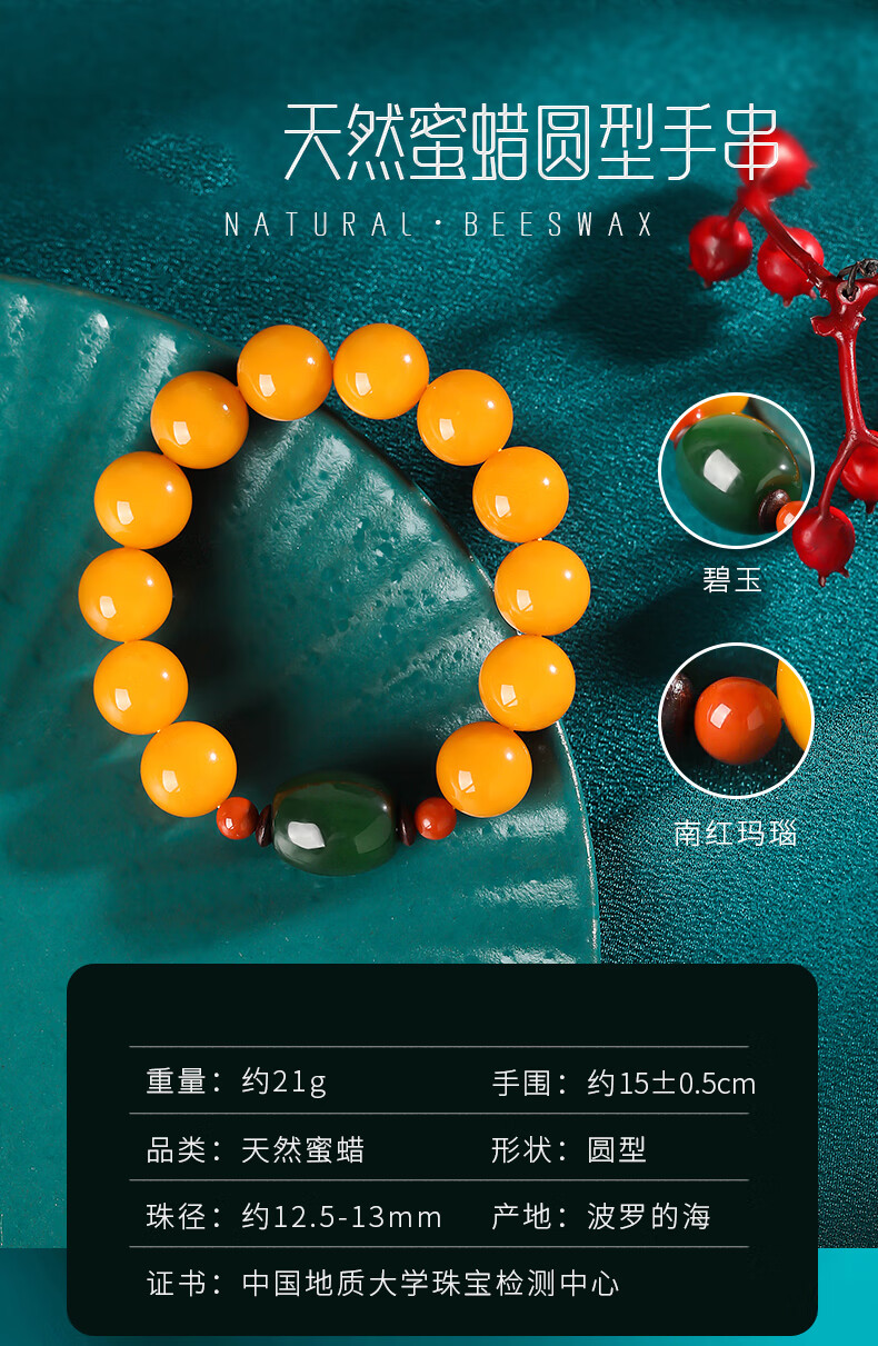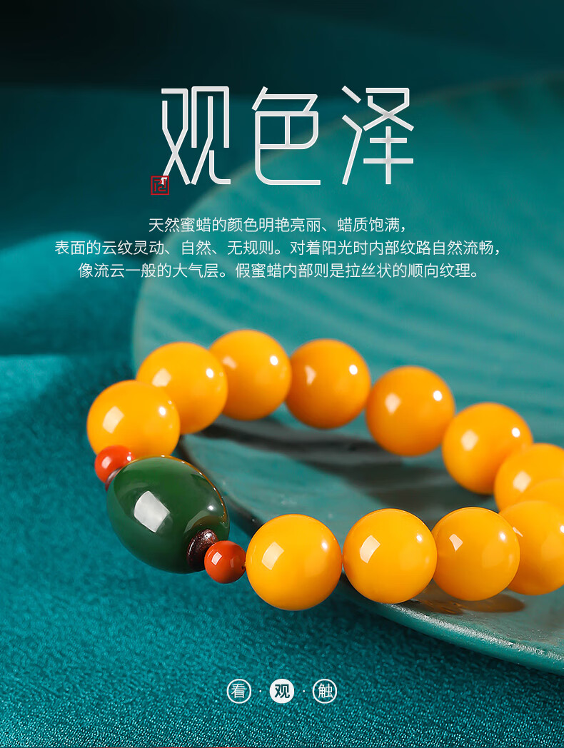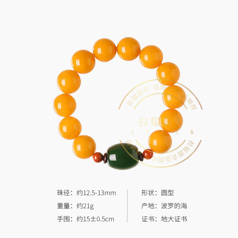 Layun Feiyin Collection Beeswax Bracelet for Men and Women Baltic Chicken Fat Yellowstone Amber Bracelet Single Circle Light Luxury Gift with Certificate Bead Sutra 12-13mm (one item, one certificate)