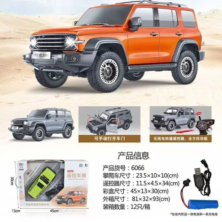 Linda 1 24 tank 300 rechargeable light children's remote control car model double door boy toy rc gift remote control orange