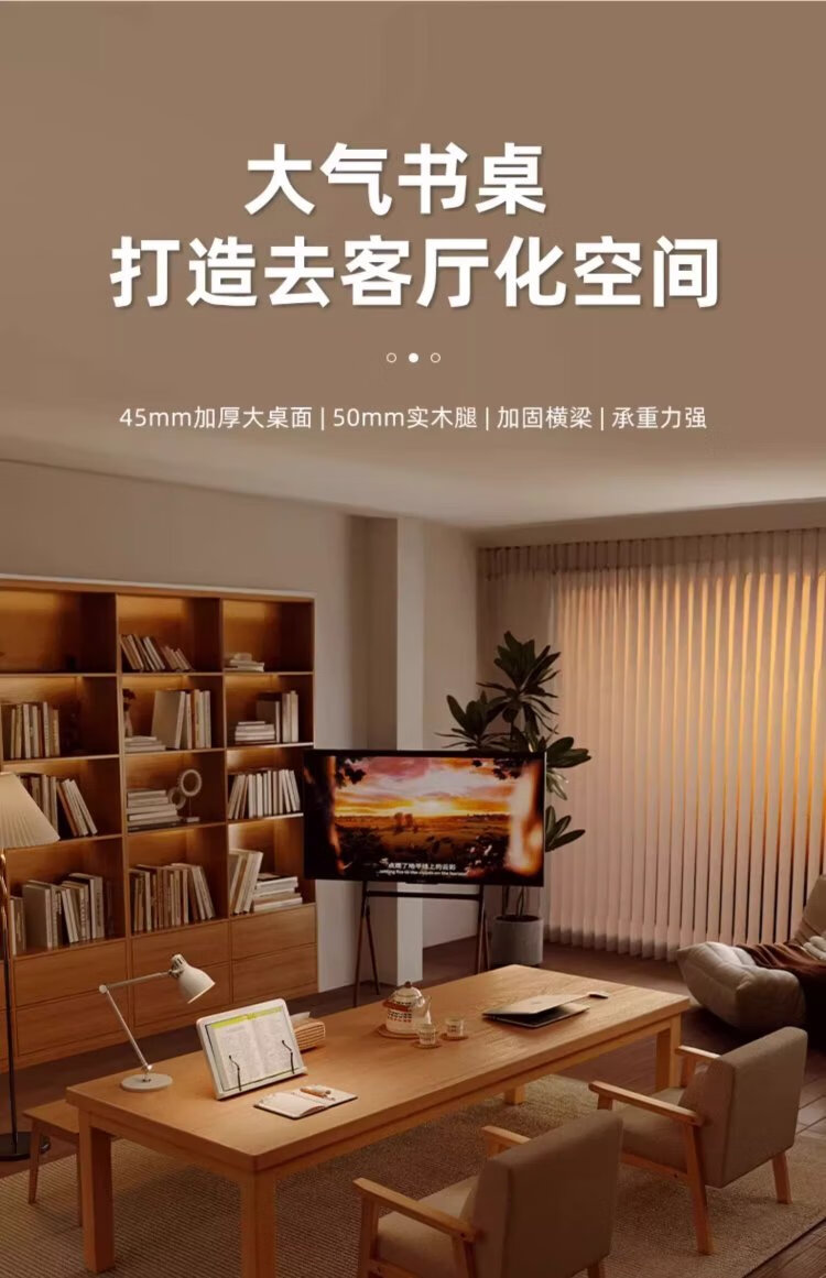 Lin Zhiyu living room large desk solid wood dining table desk integrated double long table workbench study table large tea table 45mm thickened desktop solid wood color 220x90
