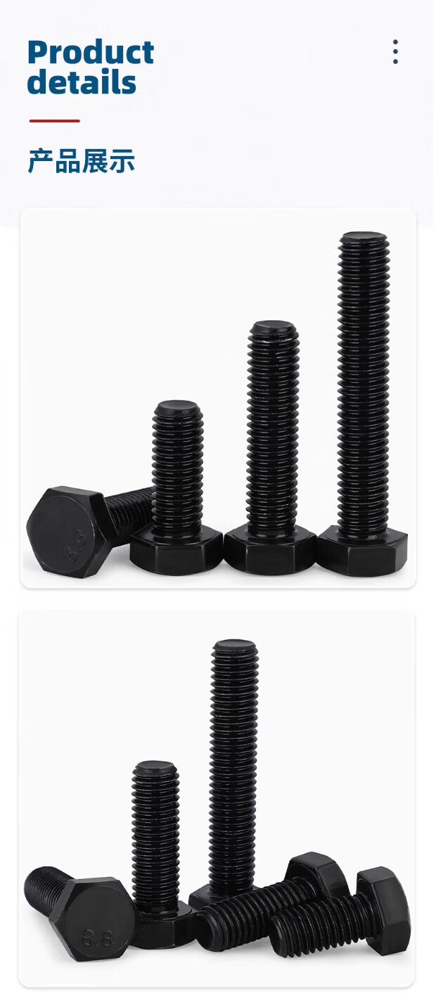 Tianzhuo Hardware grade 8.8 external hexagonal screws and bolts M3M4M5M6M8M10M12M16*30x40x50x60x70x80X100 M22*150