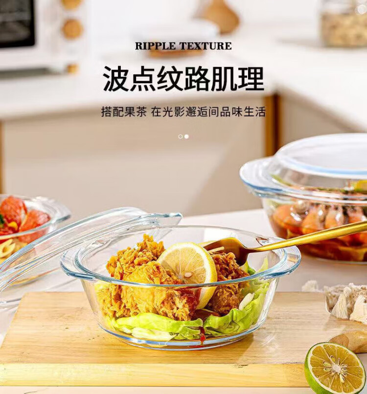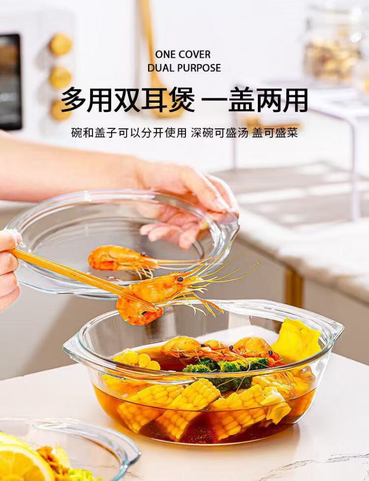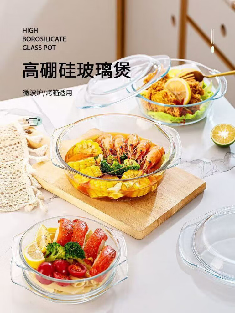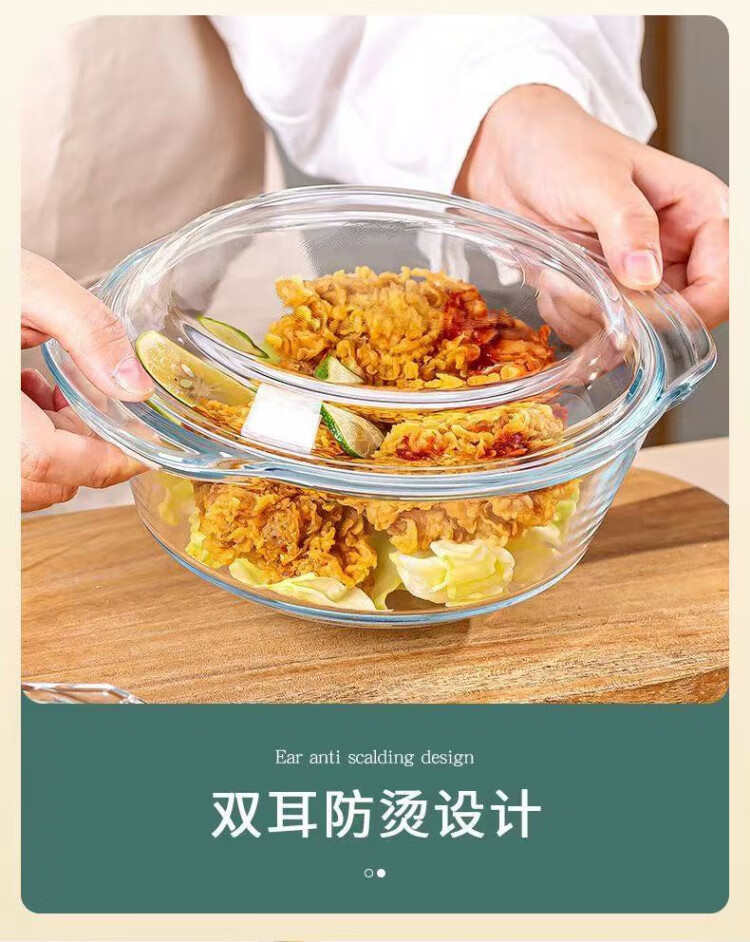 Liuhui double-eared glass steamed egg bowl with lid, high temperature resistant microwave oven special bowl, egg custard transparent baby food steamed egg bowl, store manager recommended 0.7L 2-3 eggs