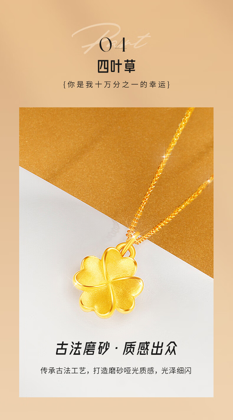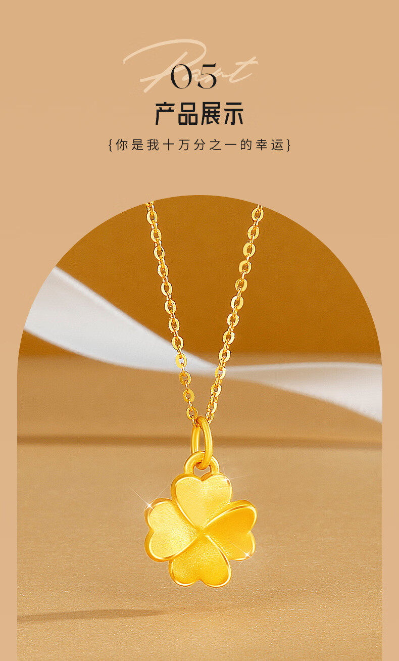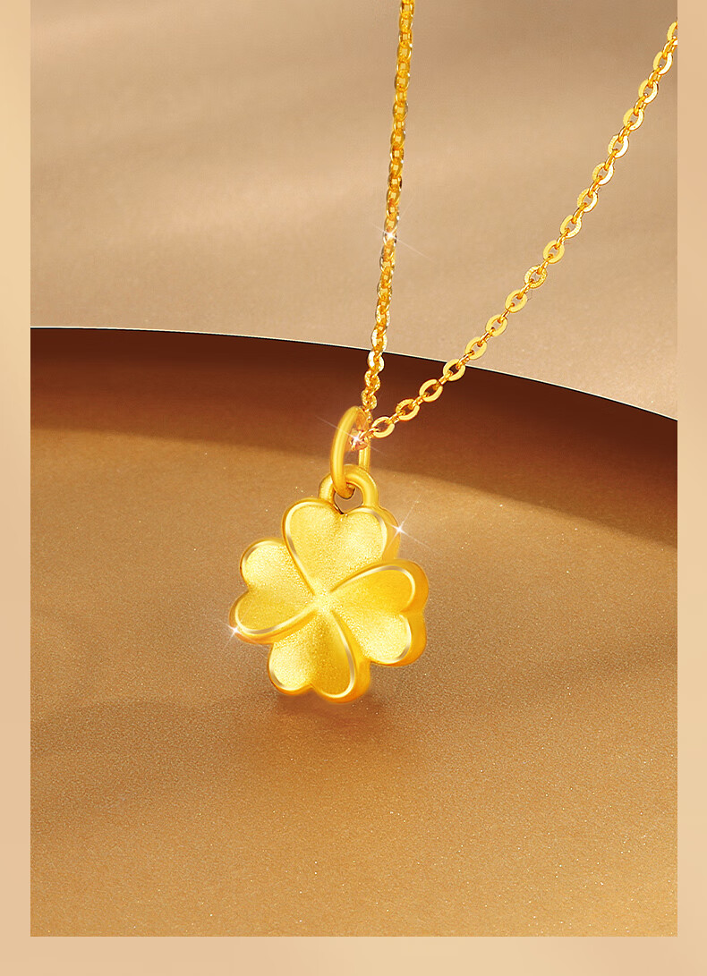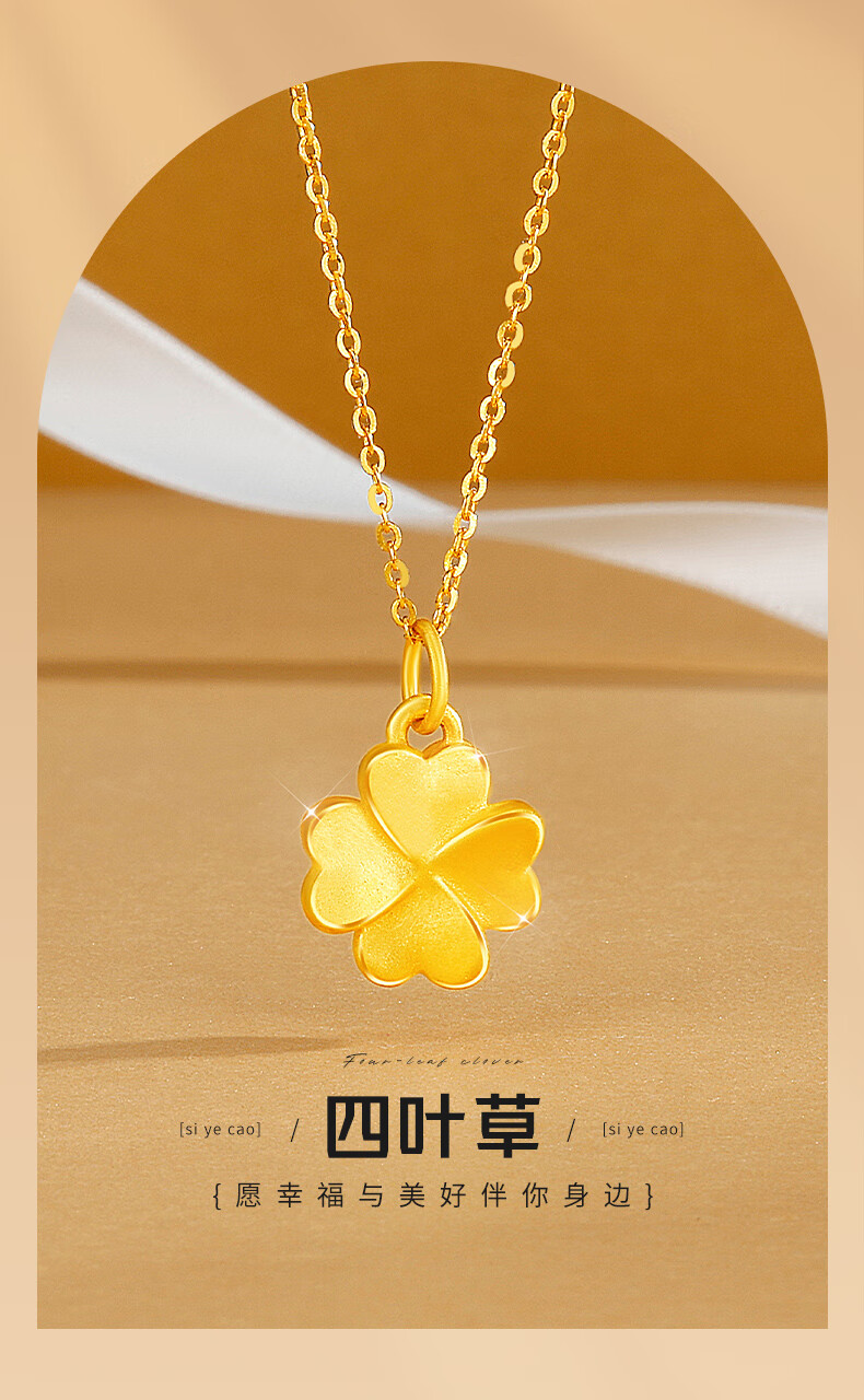 CHINA GOLD Gold Necklace Women's Pure Gold Four-Leaf Clover Pendant Set Chain Holiday Valentine's Day Gift for Girlfriend, Wife, Mom Pure Gold Pendant + S925 Chain