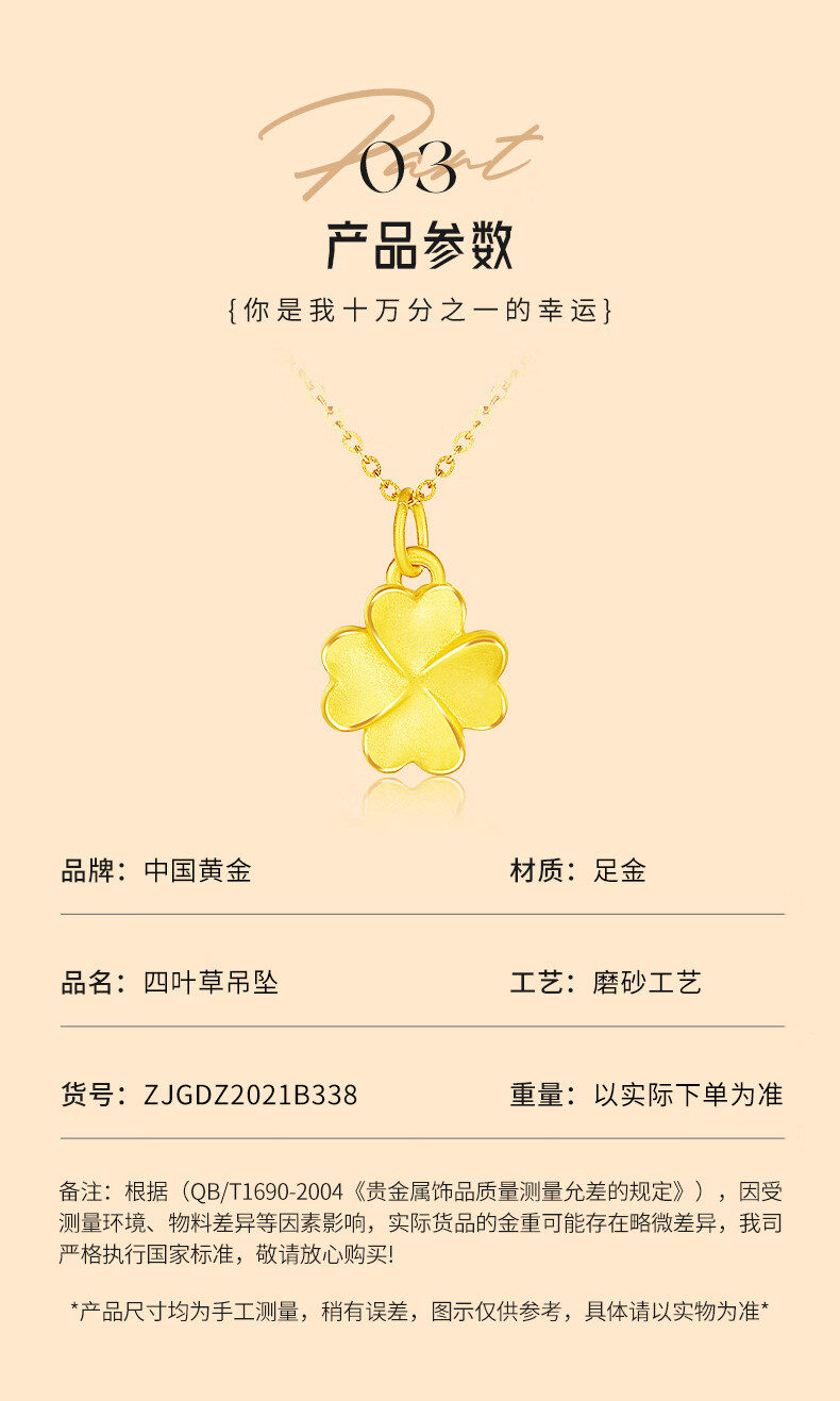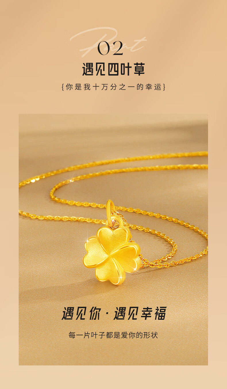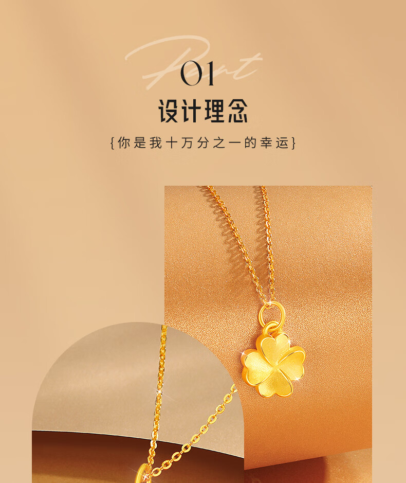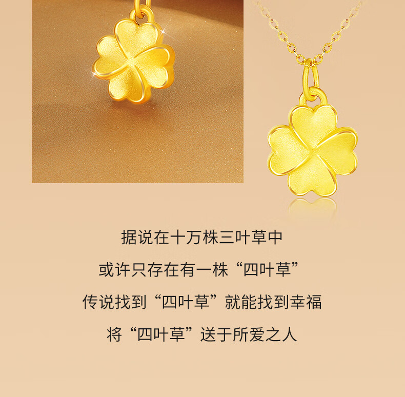 CHINA GOLD Gold Necklace Women's Pure Gold Four-Leaf Clover Pendant Set Chain Holiday Valentine's Day Gift for Girlfriend, Wife, Mom Pure Gold Pendant + S925 Chain