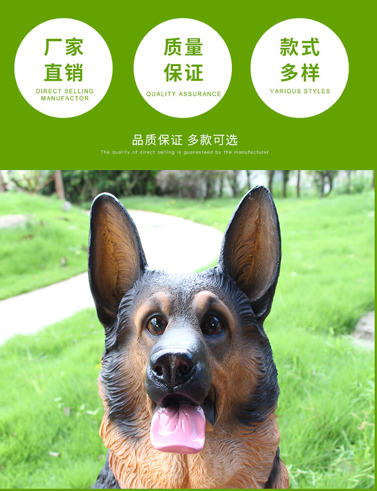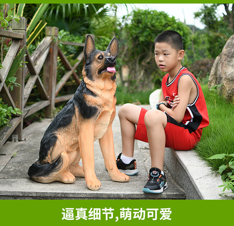 Wantang dog ornaments simulated German shepherd outdoor watchdog model big wolf dog sculpture living room courtyard balcony decoration craft 89 cm high sitting posture big German shepherd