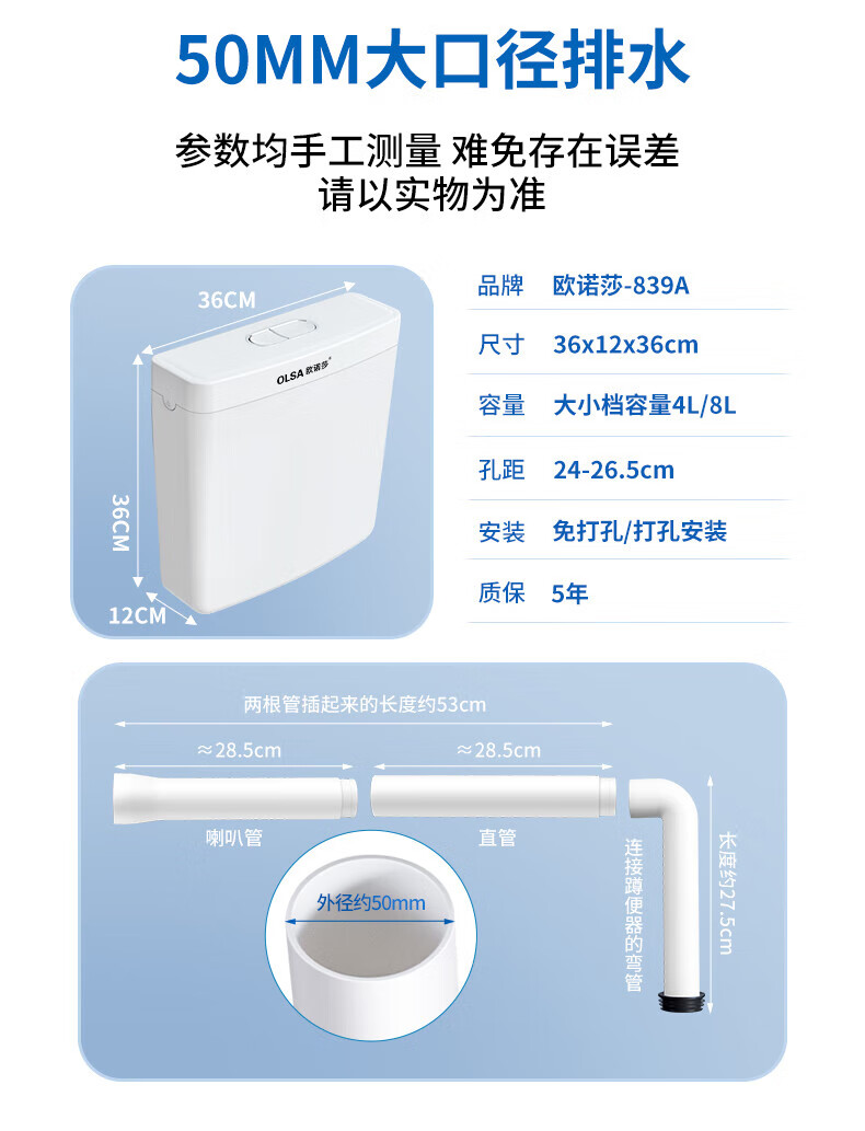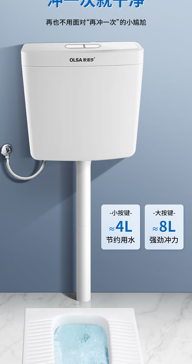OLSA toilet home bathroom toilet flush tank squat toilet water tank silent energy saving dual control large impact 839A flush tank + installation package + white spray gun set