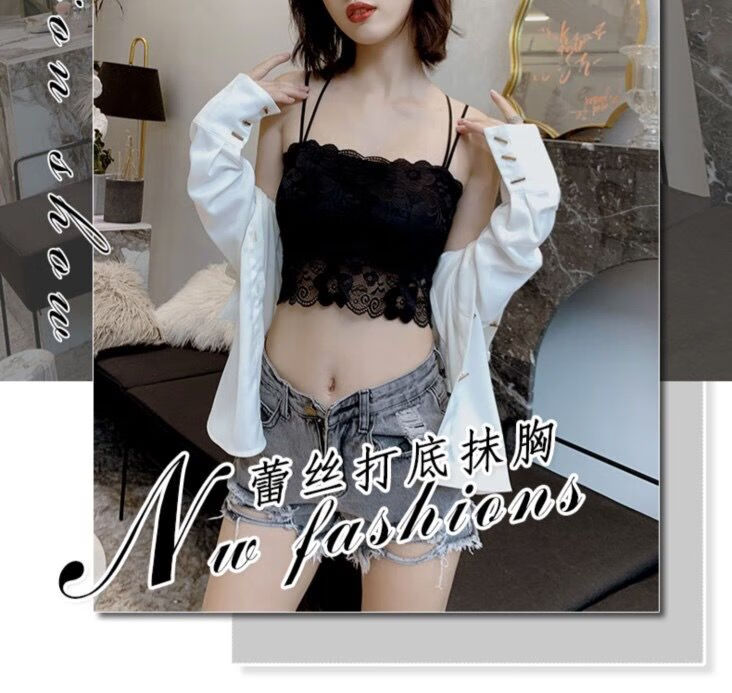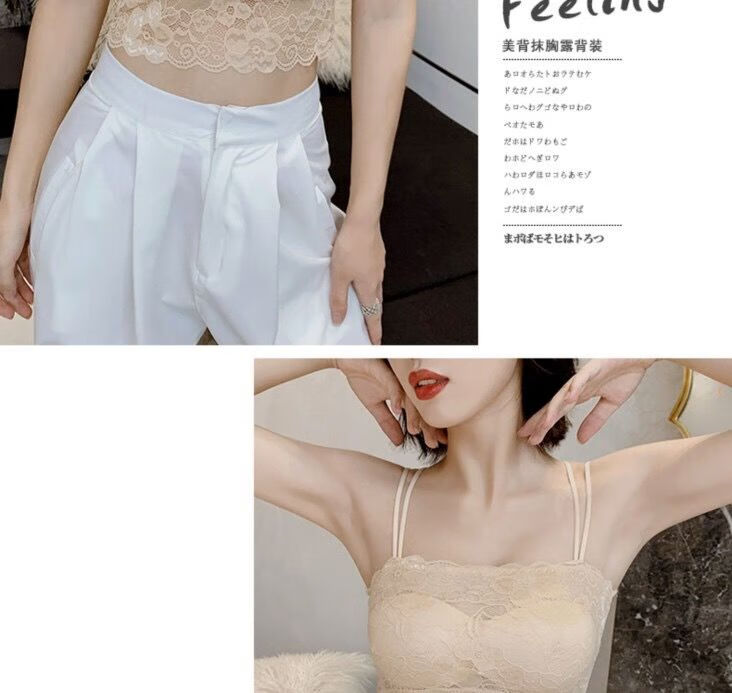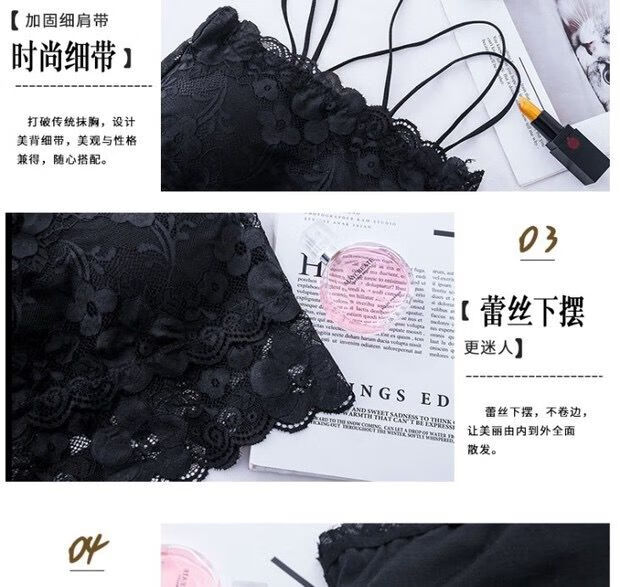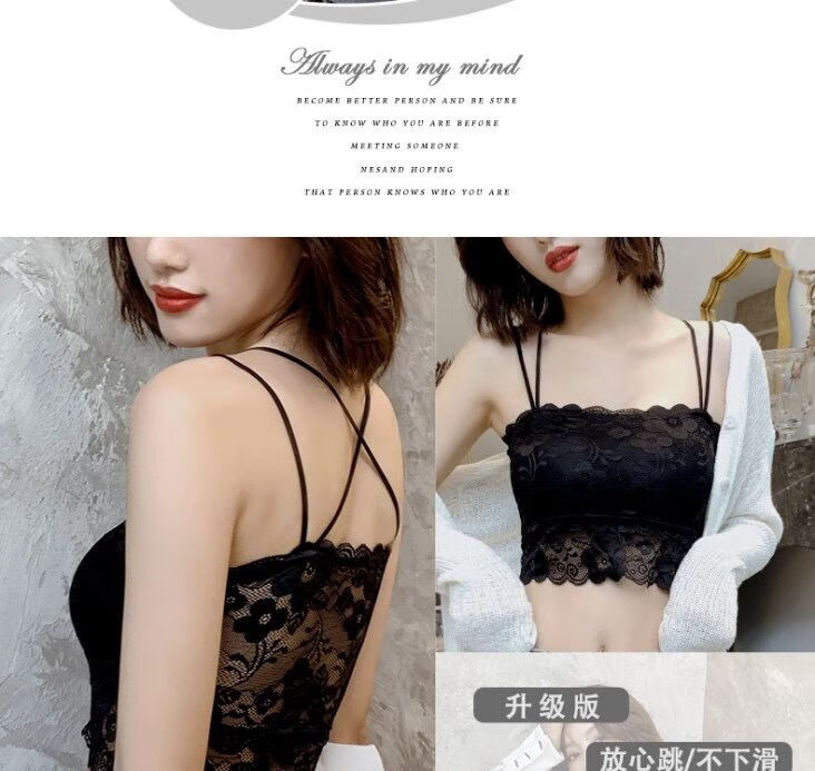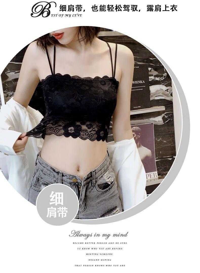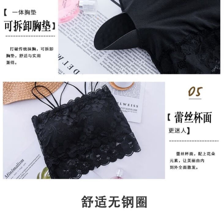 LangSha Breast Covering Artifact Lace Breathable Beautiful Back Tube Wrap Bra Women's Bra Anti-Lighting Tape Padded Camisole 1 Pack Black M 70-105Jin Jin is equal to 0.5kg