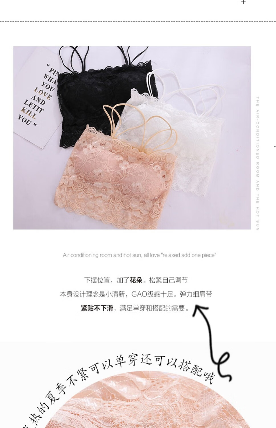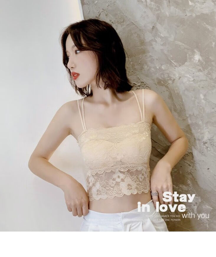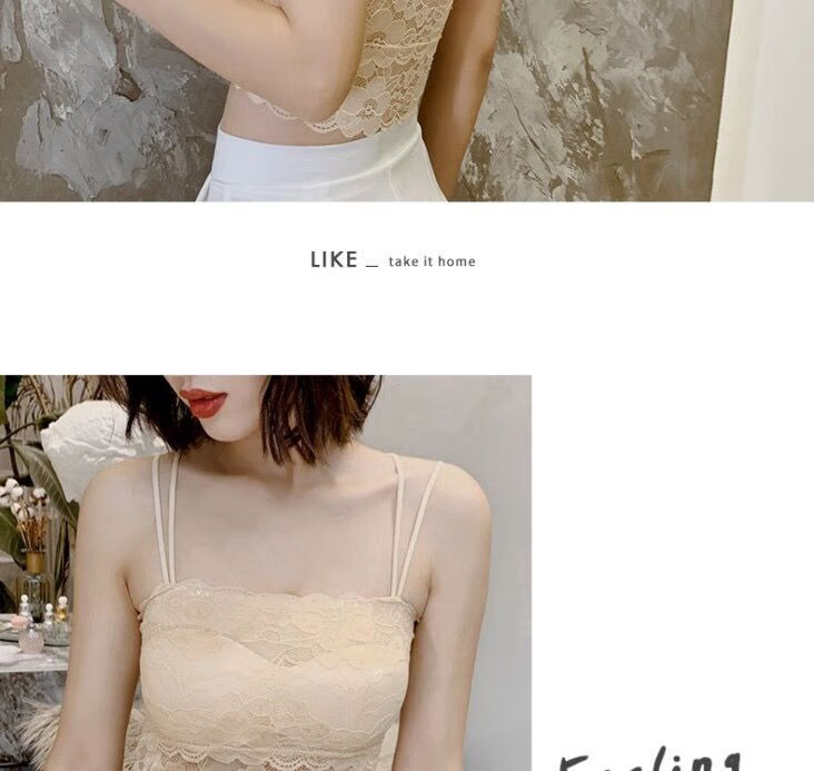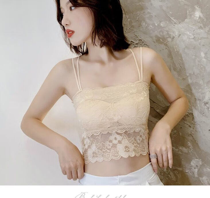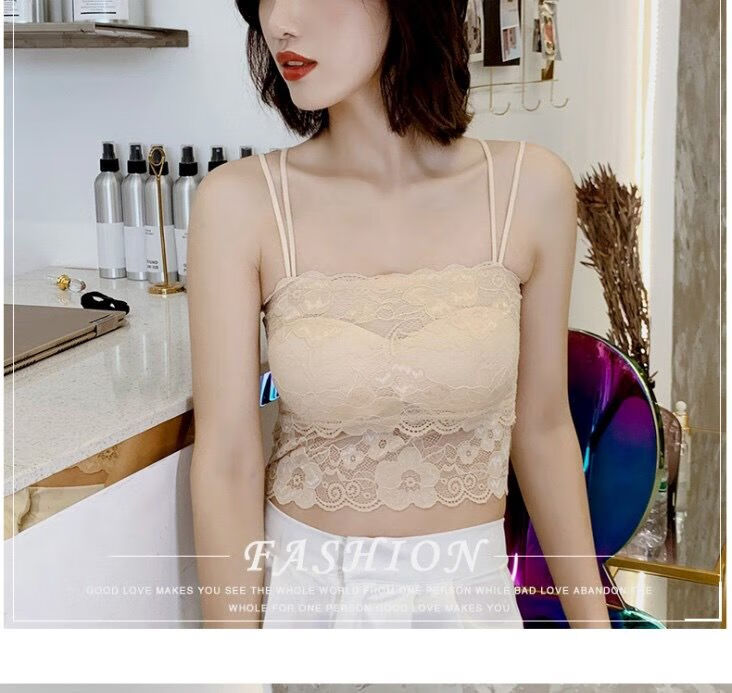 LangSha Breast Covering Artifact Lace Breathable Beautiful Back Tube Wrap Bra Women's Bra Anti-Lighting Tape Padded Camisole 1 Pack Black M 70-105Jin Jin is equal to 0.5kg