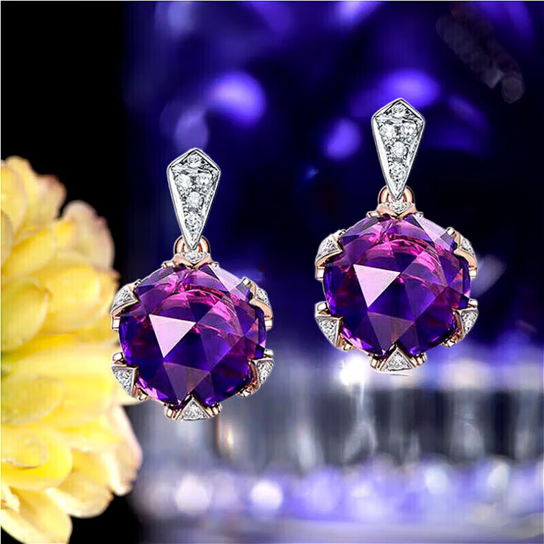 Haikai Earrings Women's Amethyst Crystal Earrings Luxury Jewelry Valentine's Day Birthday Gift for Wife or Girlfriend 5A Grade Amethyst Earrings (9 carats/flawless selection)