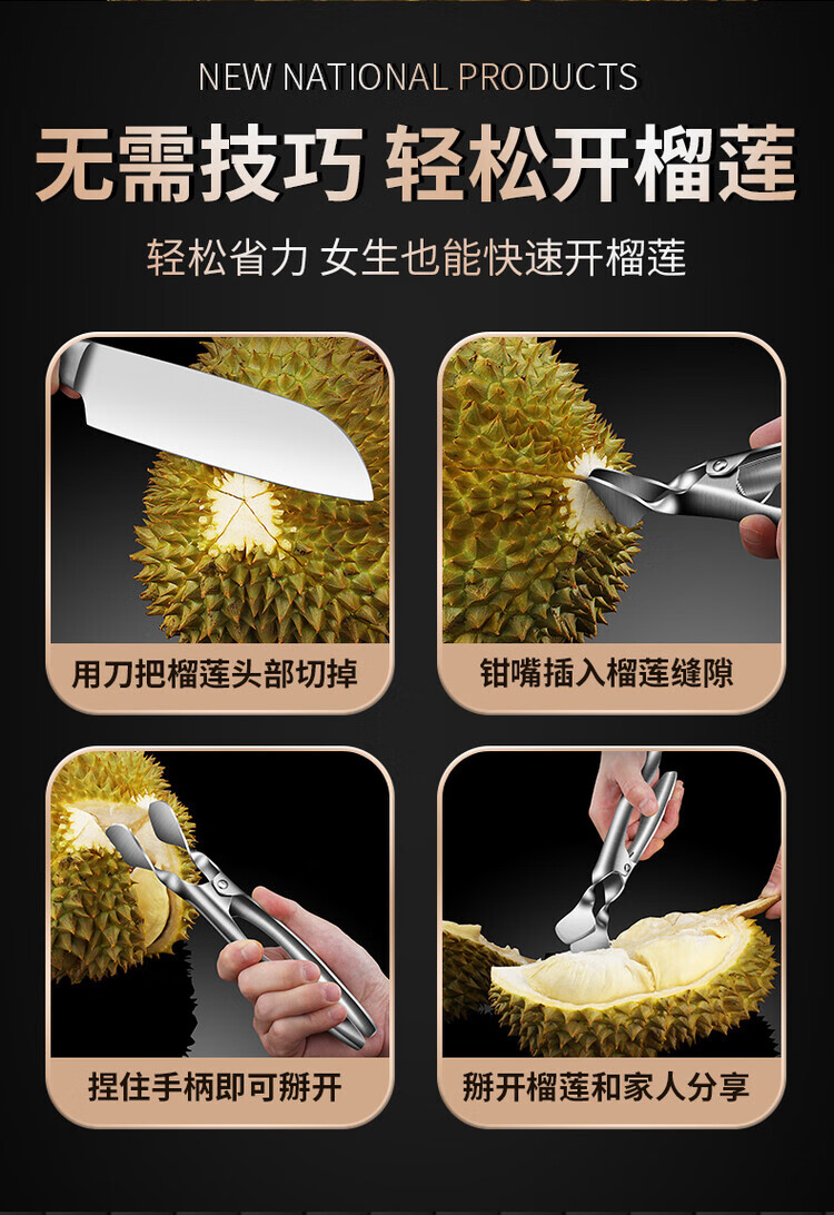Ximing 304 stainless steel durian opener artifact opener durian pliers clamp special tool durian opener peeler 304 steel durian opener