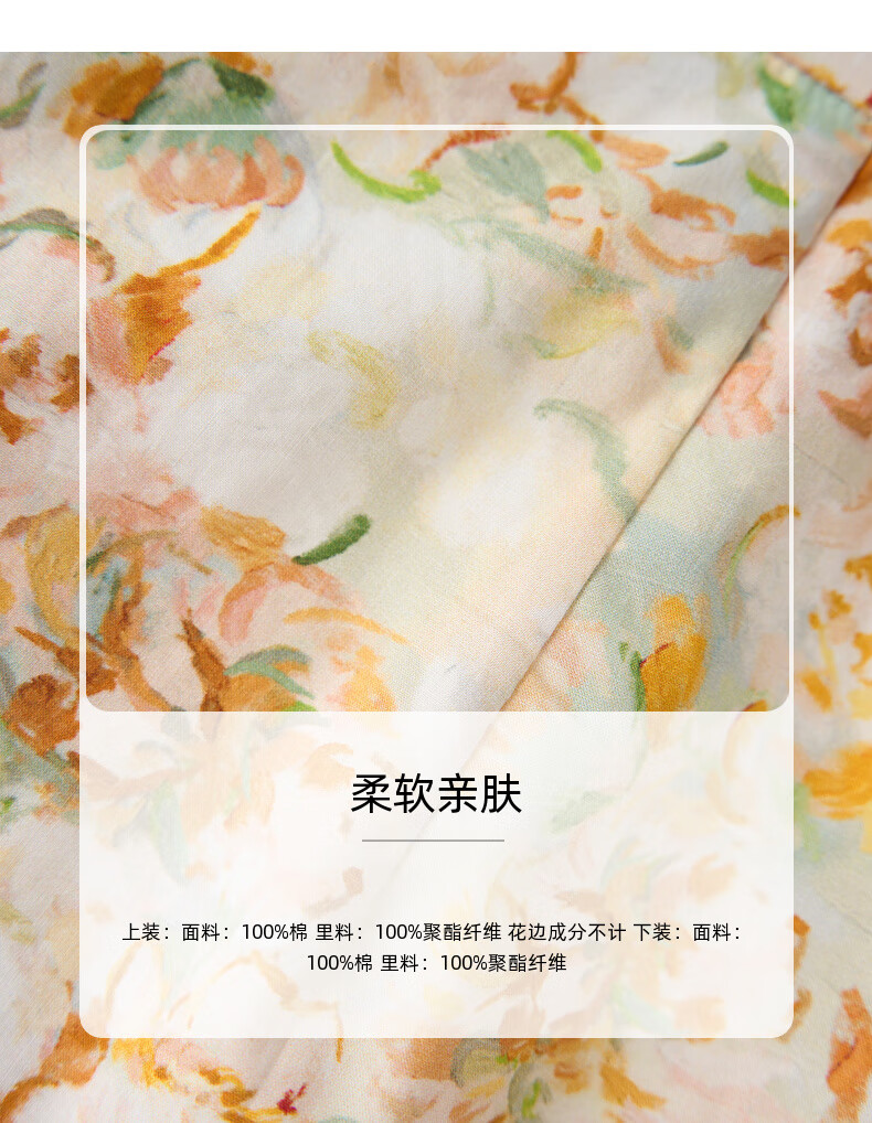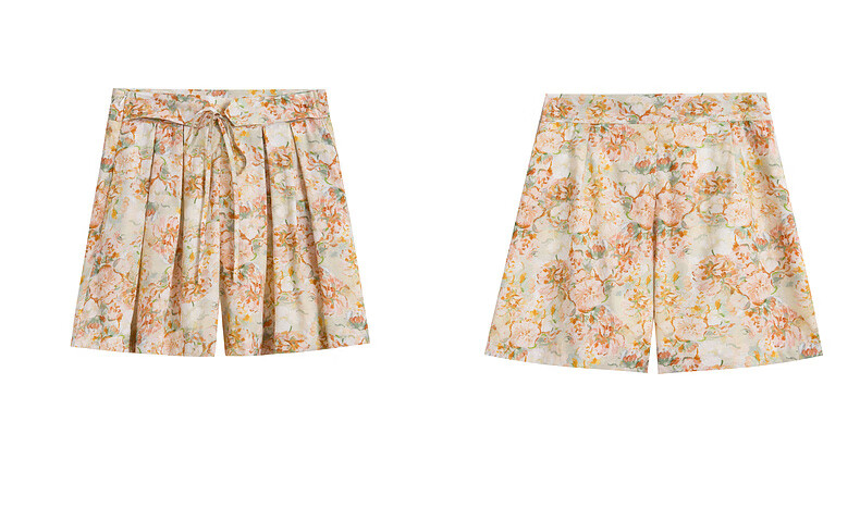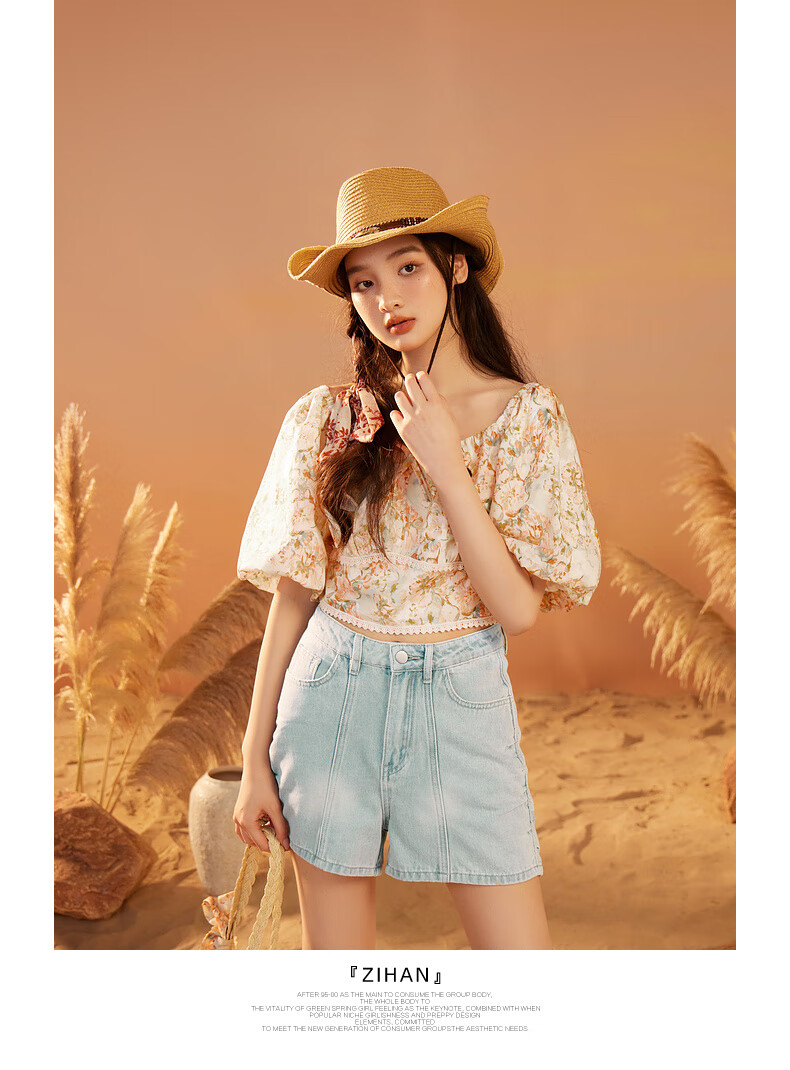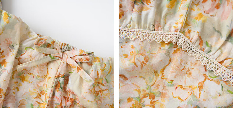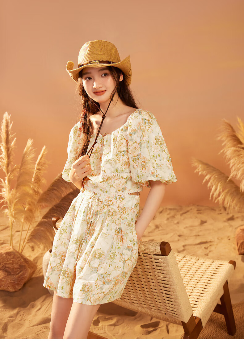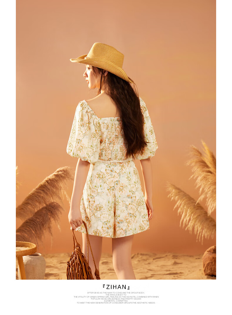 Zihan (ZIHAN) Zihan holiday style floral top and shorts set for women summer shirt and casual pants two-piece set with midsole print M
