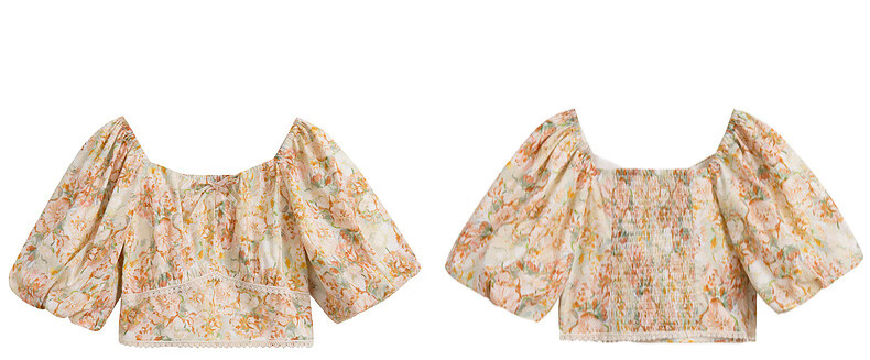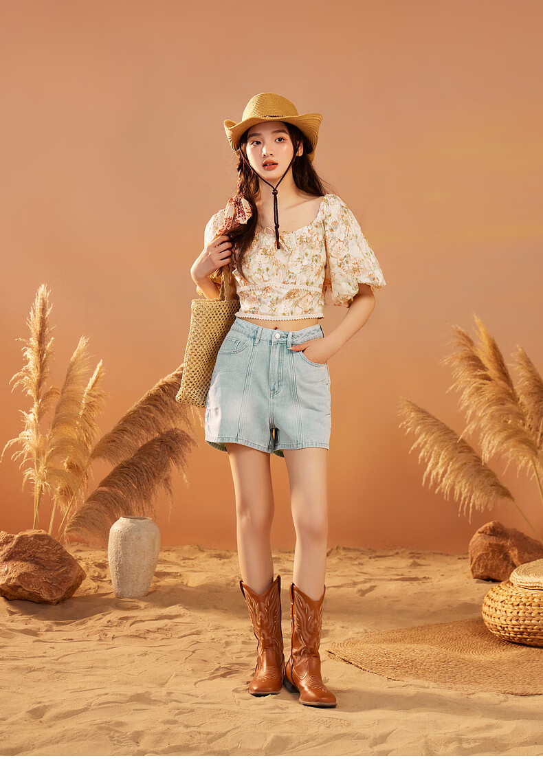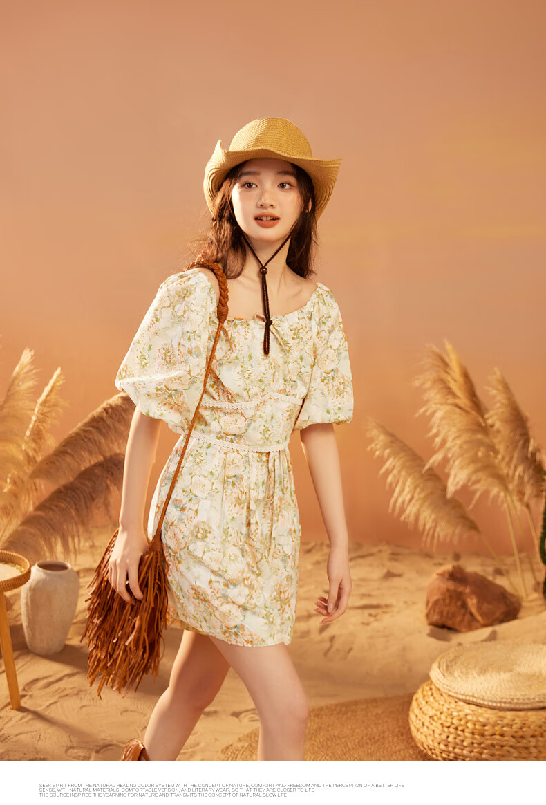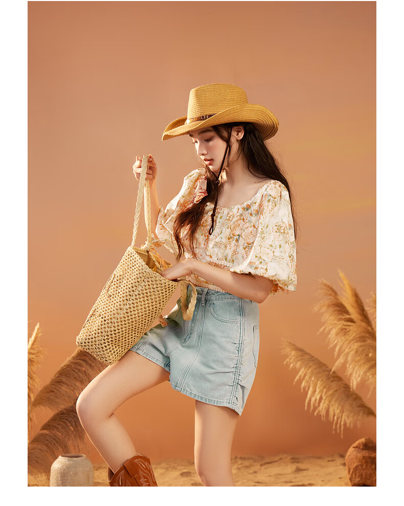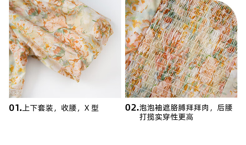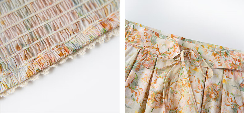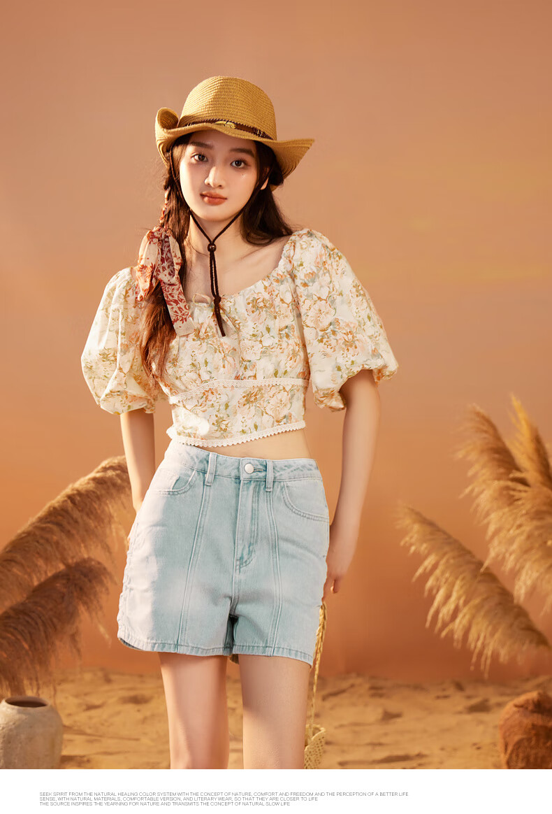 Zihan (ZIHAN) Zihan holiday style floral top and shorts set for women summer shirt and casual pants two-piece set with midsole print M