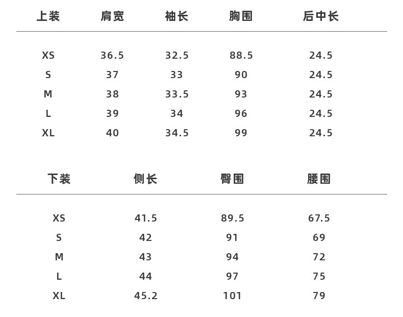 Outseam (cm) 99 cm 101.5 cm 104 cm 106.5 cm 109 cm
