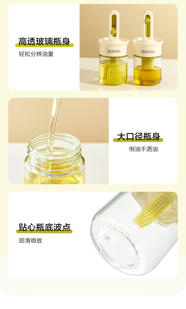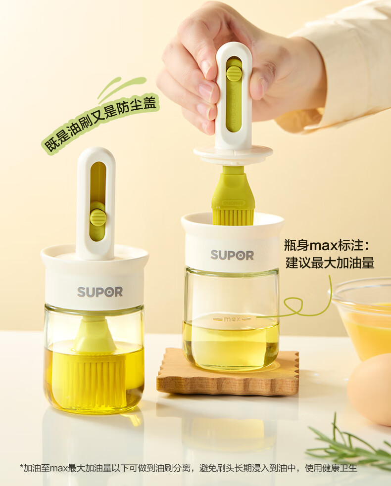 SUPOR oil brush high temperature resistant silicone oil brush bottle glass bottle integrated kitchen household retractable oil brush retractable integrated oil bottle high temperature resistant