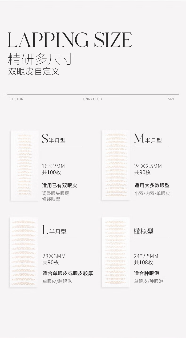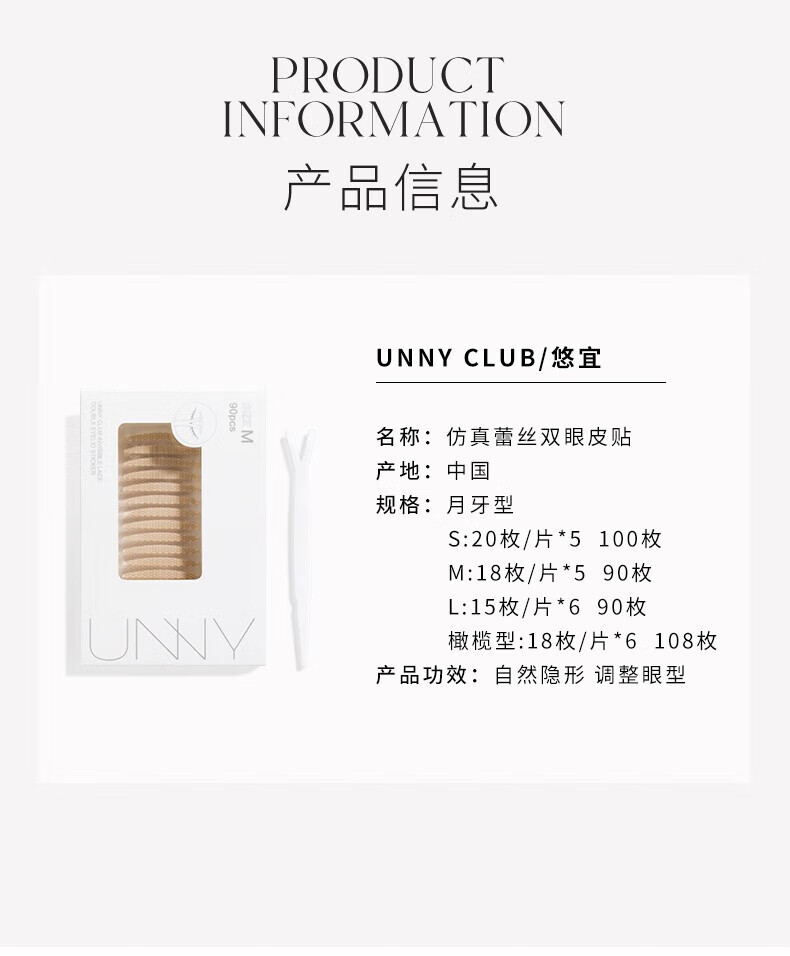 Youyi (unny club) double eyelid stickers, simulated lace skin color, light, breathable, natural, invisible, traceless, waterproof and swollen eye bubble beauty stickers for women, L length and width type 90 stickers