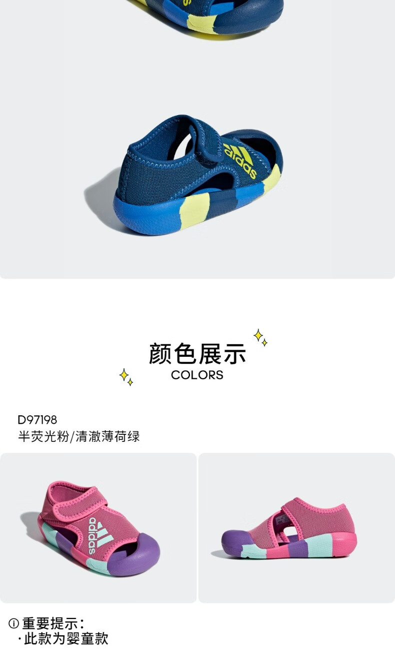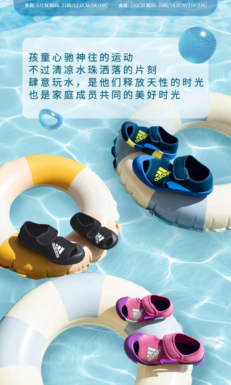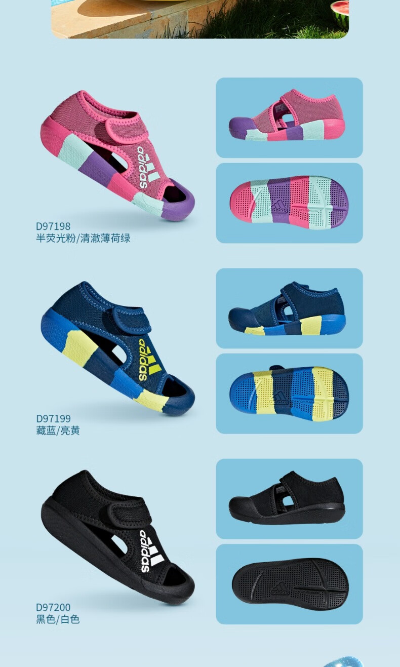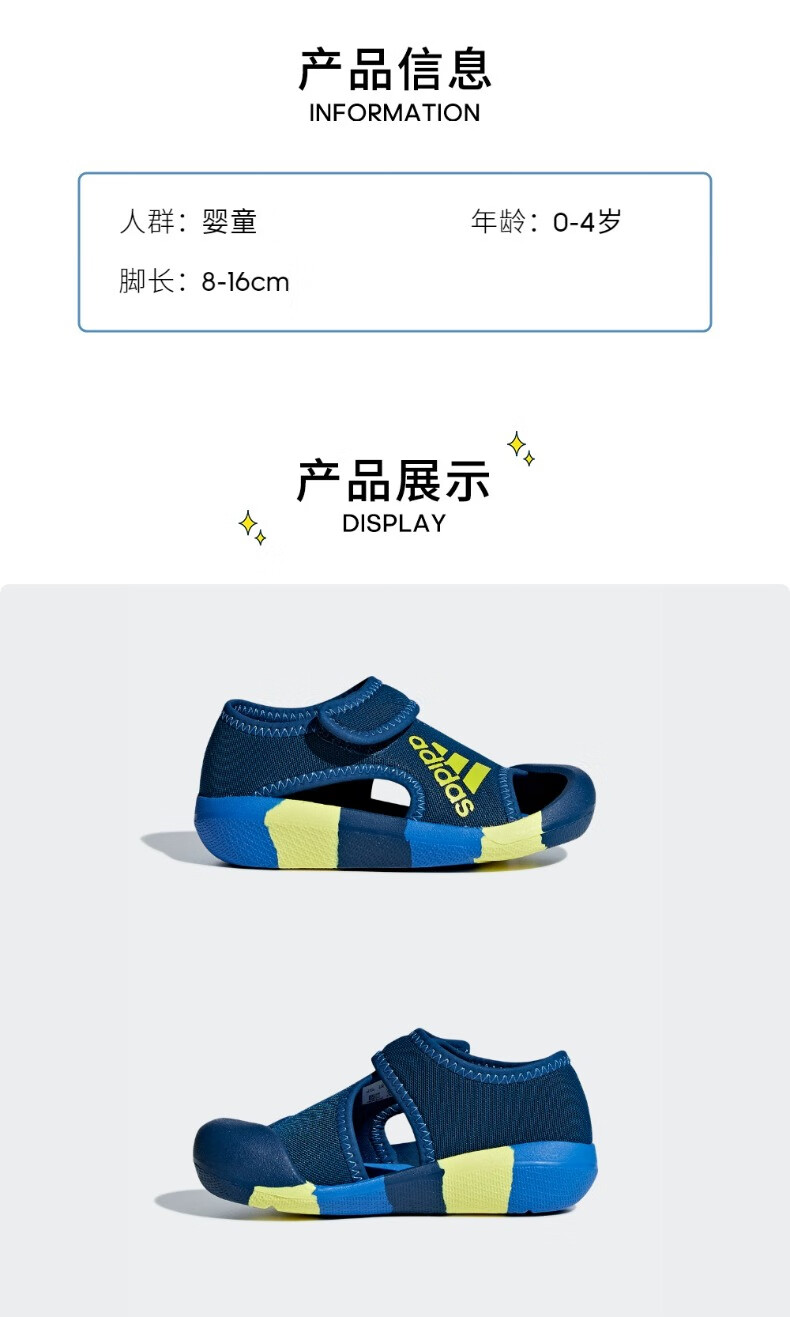 Adidas pontoon AltaVenture Velcro toe-cap sandals summer new style for boys and girls, navy blue and bright yellow D97199 21 (120mm)
