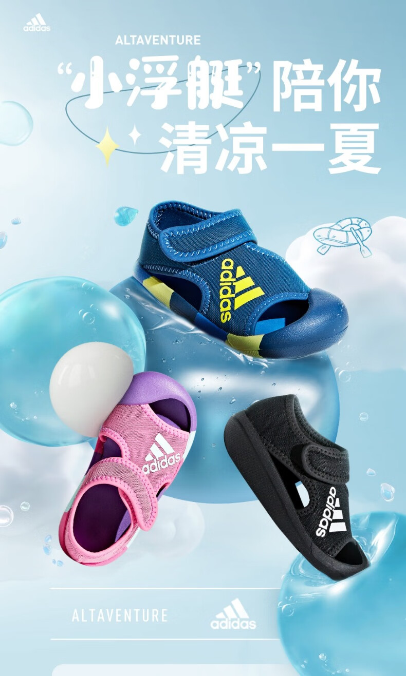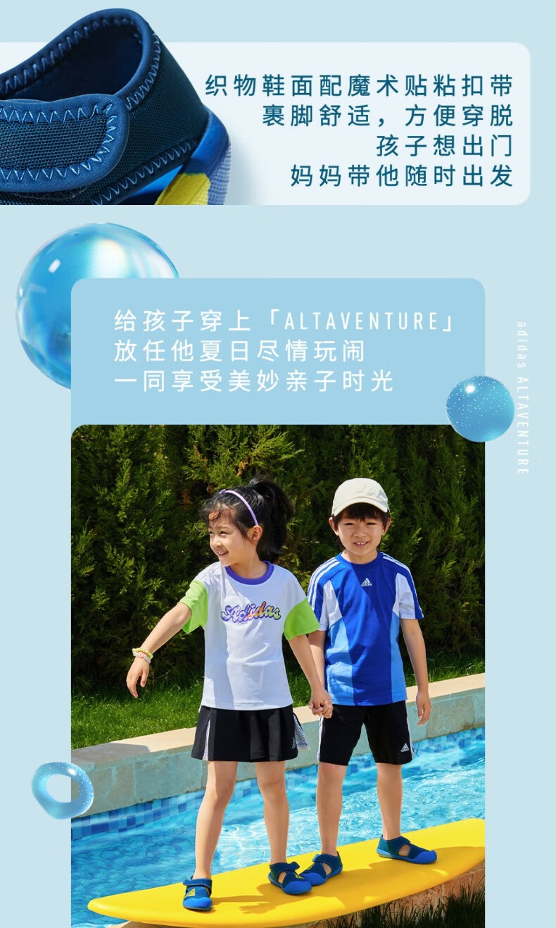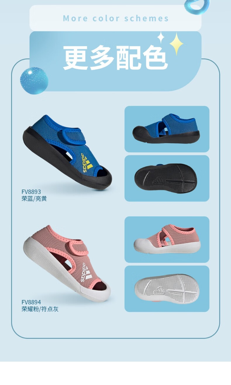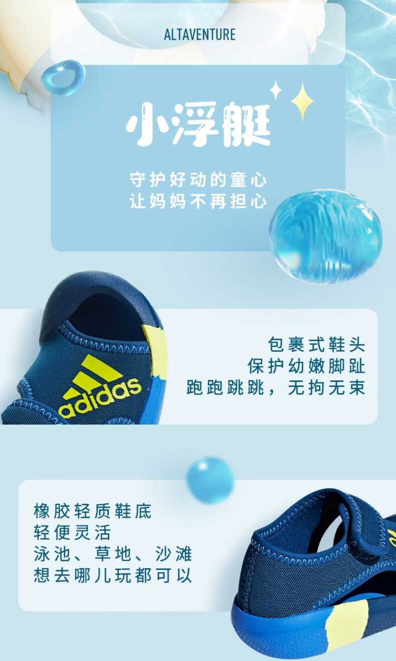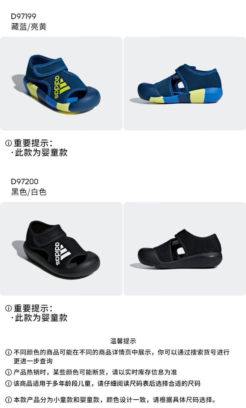 Adidas pontoon AltaVenture Velcro toe-cap sandals summer new style for boys and girls, navy blue and bright yellow D97199 21 (120mm)