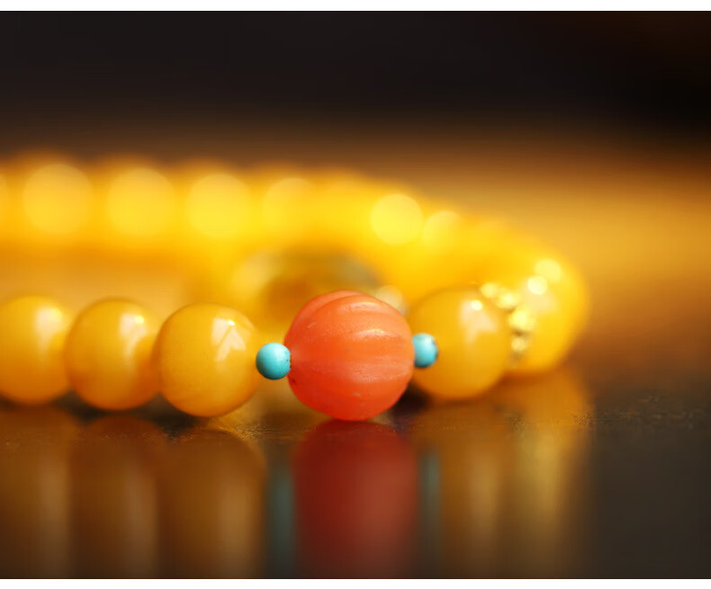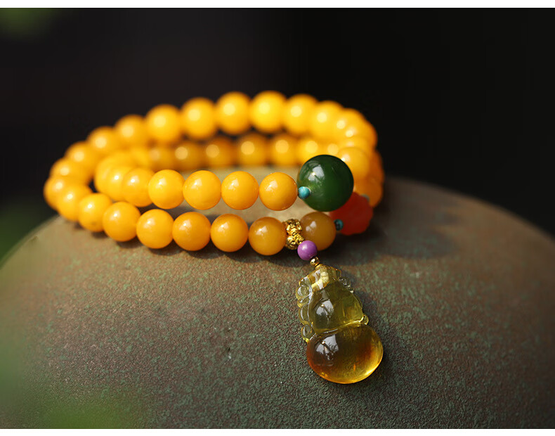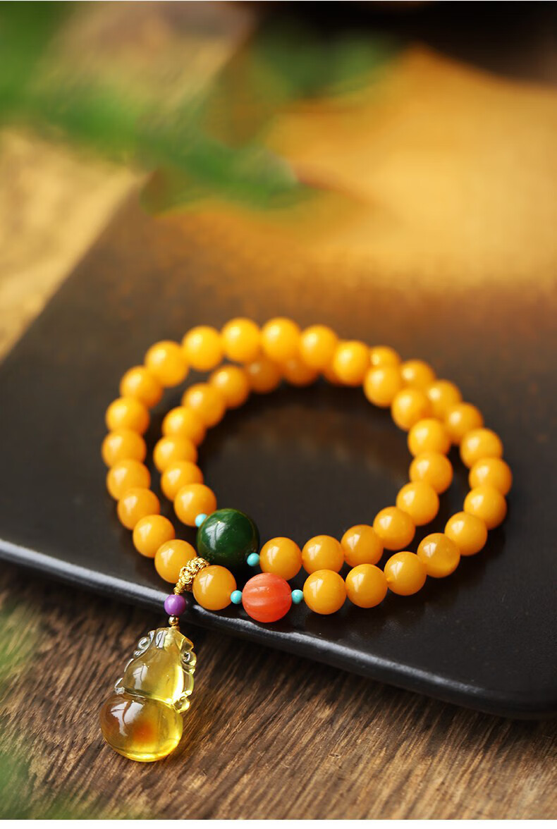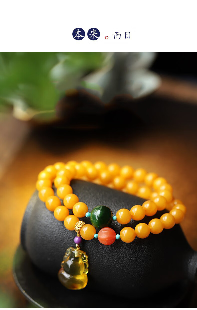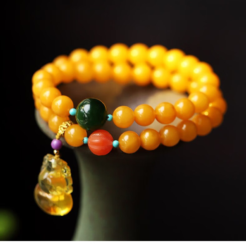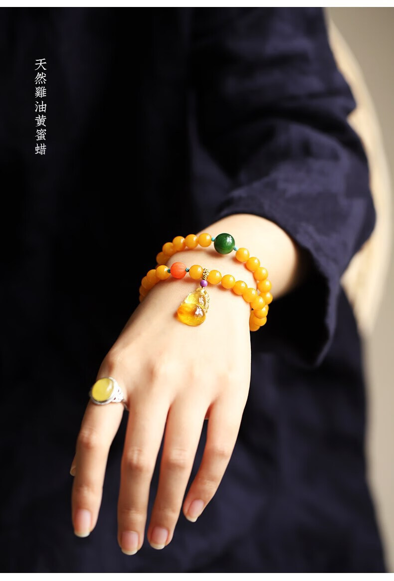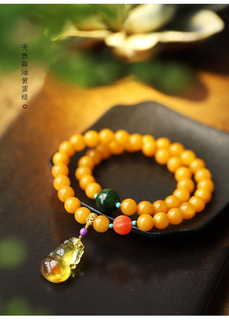 Layun Feiyin Chicken Fat Yellow Beeswax Multi-circle Bracelet Women's Original DIY Light Luxury Gift Southern Red Gourd Jewelry Buddha Bead Bracelet About 7mm